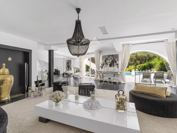 Located in the heart of the most sought-after area of Mougins, within a private domain with 24/7 security, this superb property, completely renovated in 2025, offers a rare living environment, in absolute calm, surrounded by greenery, in the immediate vicinity of the forest, the golf course and international schools.