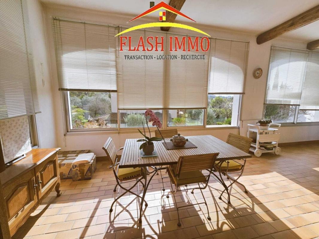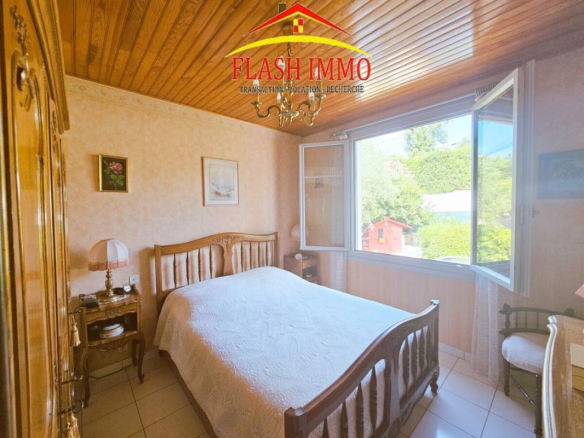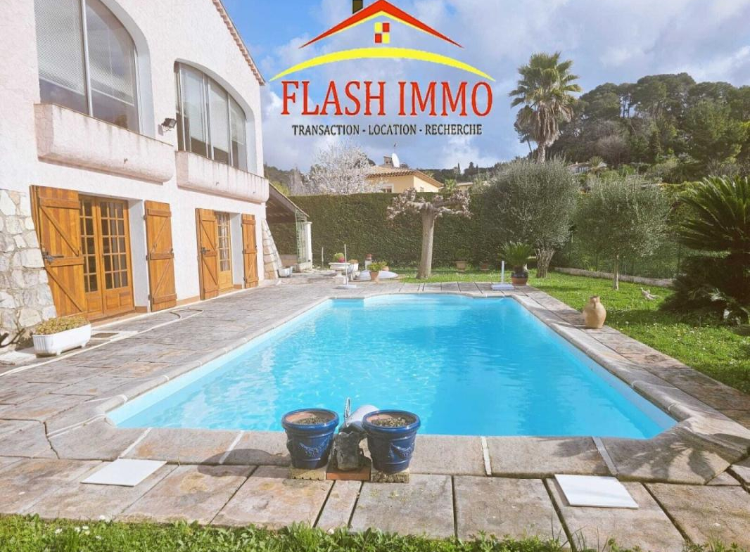 In a quiet, residential area of Mougins, this charming and meticulously maintained detached villa offers 112 sq m of living space. The ground floor comprises a 3/4-room apartment with an entrance hall, a 28 sq m double living room with a fireplace (convertible into a second bedroom) extending onto a 25 sq m veranda overlooking the garden and boasting magnificent unobstructed views, a fitted kitchen, a bedroom, and a shower room with WC.