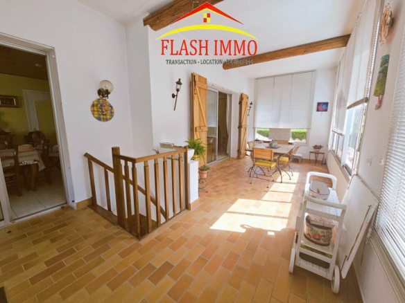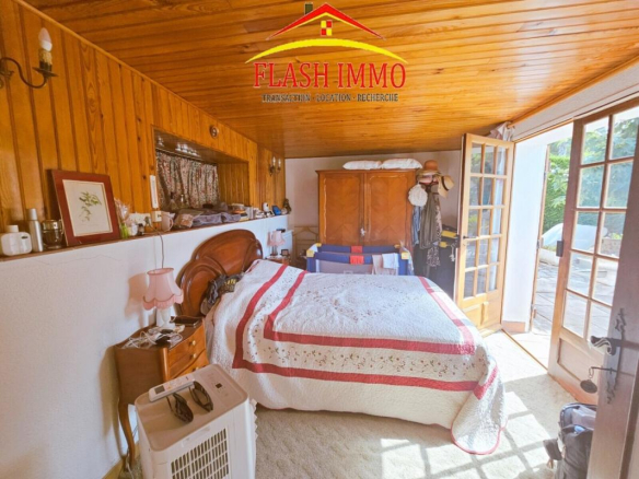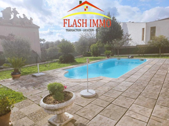 An internal staircase leads to the garden level, where an independent bedroom with a washroom (approximately 18 sq m) opens directly onto the garden. There is also a laundry room, a large 18 sq m garage, and a 26 sq m cellar, all situated on an 800 sq m plot with mature trees, a lovely swimming pool, and a carport. The property benefits from double glazing throughout and reversible air conditioning.