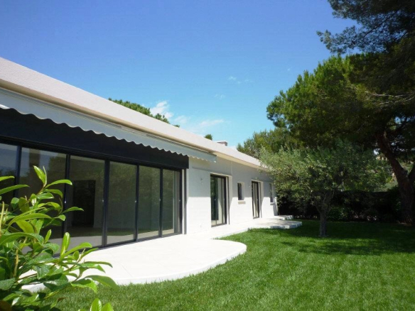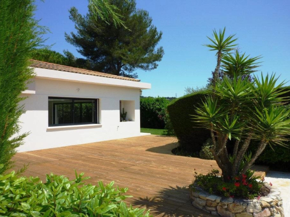 Near the old village, in a residential area of Mougins close to all amenities, a beautiful, renovated, single-story contemporary villa on a flat, attractively landscaped 1400m² plot. Facing south, it features a bright and spacious living room opening onto the garden, an open-plan fitted kitchen, and three en-suite bedrooms.