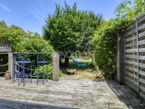Benefiting from a superb walled garden of nearly 300m2 with no overlooking neighbors, this property comprises on the ground floor an entrance hall, a dining room and a living room with a fireplace on parquet flooring, a kitchen opening onto the terrace, a back kitchen/laundry room, a large office, a bedroom, a shower room and a separate toilet with a washbasin.