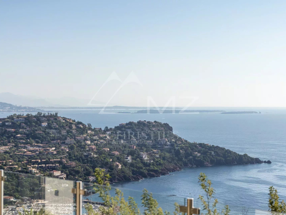 Located just outside Théoule in a secure, gated community overlooking the bay and the Esterel mountains, this modern, fully renovated villa spans two levels and offers approximately 210 sq m of living space on a plot with a swimming pool, boasting breathtaking sea views. Peaceful and south-facing, the property features four bedrooms, including a separate studio. The beaches and restaurants of Port de La Figueirette are just 5 minutes away. Théoule town center is 10 minutes away, Cannes Croisette is 35 minutes away, and Nice Airport is 45 minutes away. A truly memorable experience!