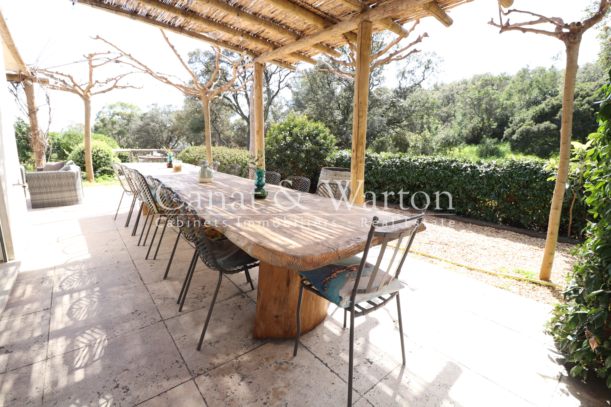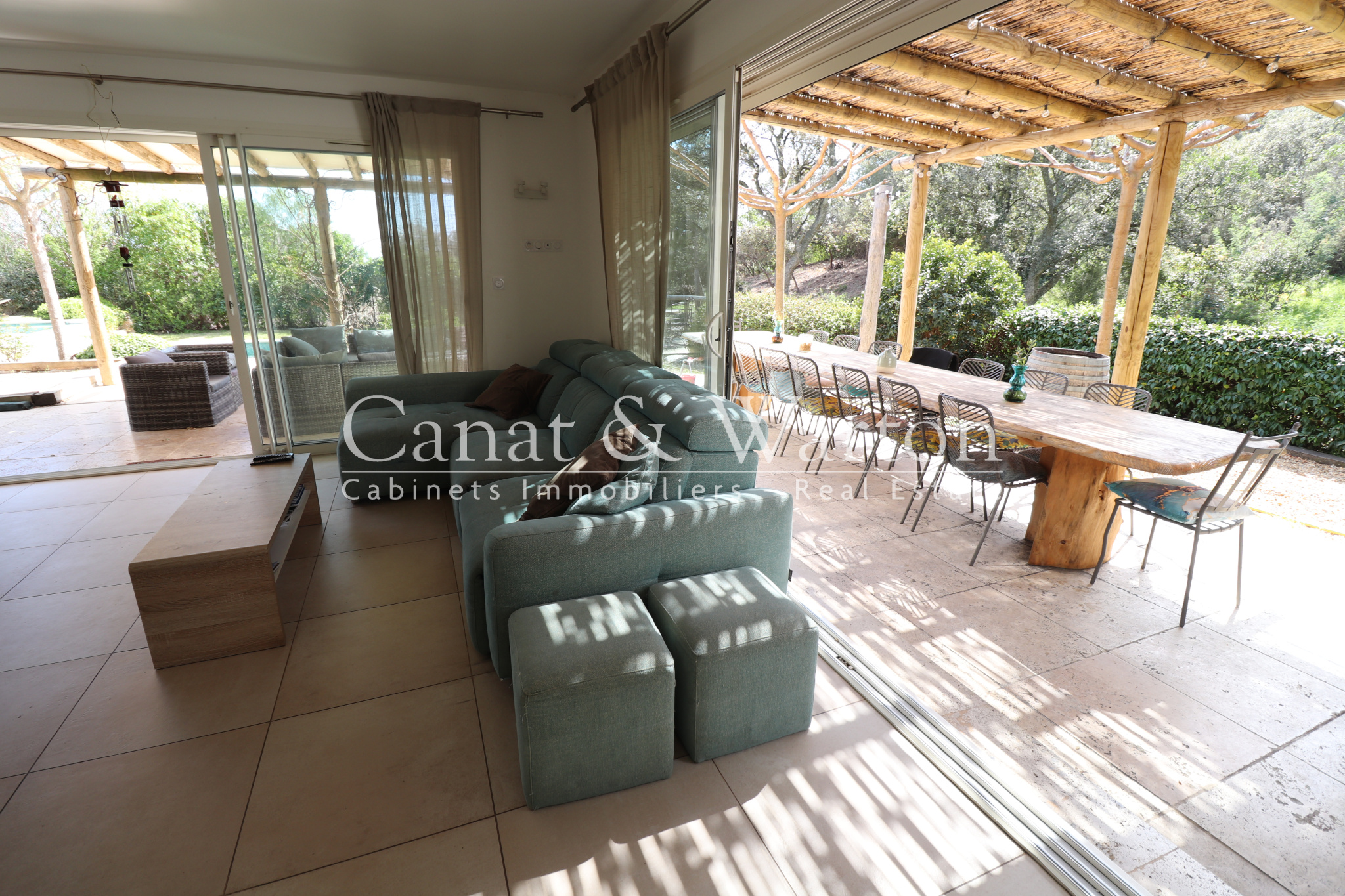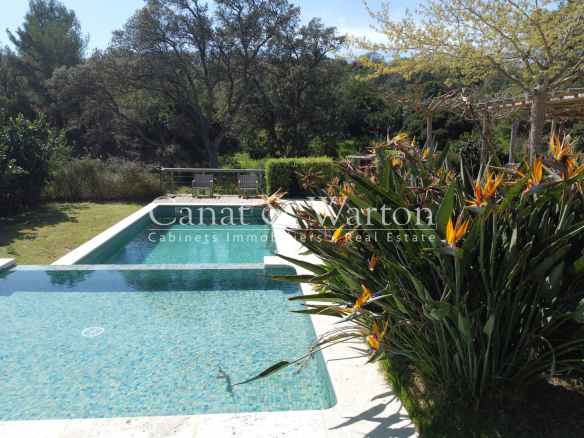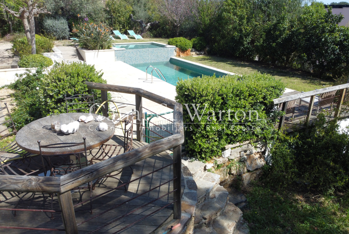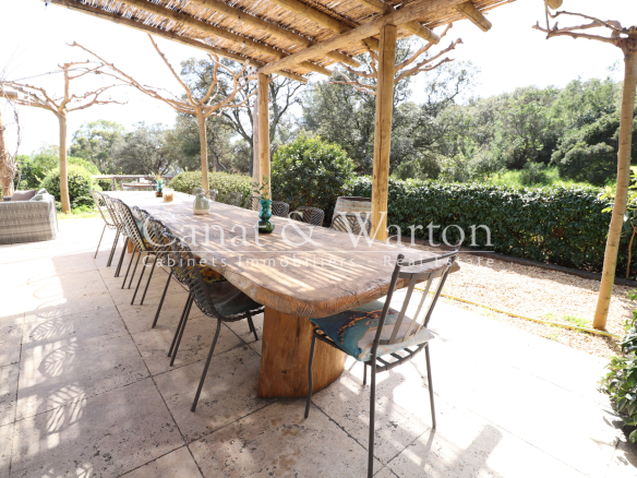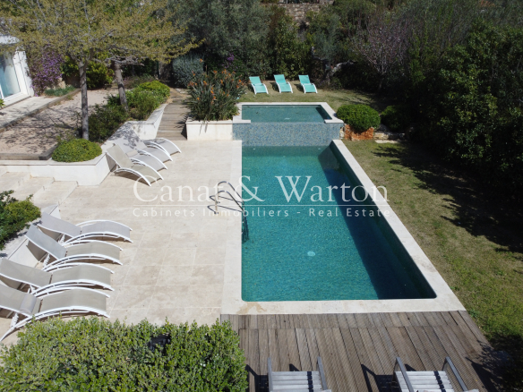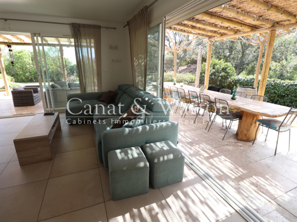 CANAT & WARTON Golfe de Saint Tropez is pleased to present this villa, built in 2017, located near Gigaro. Enjoying an ideal and peaceful setting, this single-story villa spans 180 sq m and sits on a 1,621 sq m landscaped plot, adjacent to a protected woodland area. The villa offers generous and elegant indoor and outdoor spaces. It comprises a welcoming entrance hall, a spacious living room opening onto two large terraces, complete with a barbecue area, and a fully equipped open-plan kitchen. The master suite has its own bathroom, and the two other en suite bedrooms each have their own private shower room. The living area also includes an office space and three additional bedrooms, as well as a bathroom and a functional laundry room. The infinity pool, a true highlight of this property, is surrounded by a charming landscaped garden. Finally, several parking spaces are available to complete this exceptional property. Nicolas MICHELS (EI), (RSAC 908082381), sales agent and specialist for La Croix Valmer at the CANAT & WARTON Golfe de Saint Tropez agency, is available at +33 6 70 43 34 32 or n.michels@canatwarton.com. We speak English. Information on the risks to which this property is exposed is available on the Géorisques website: www.georisques.gouv.fr