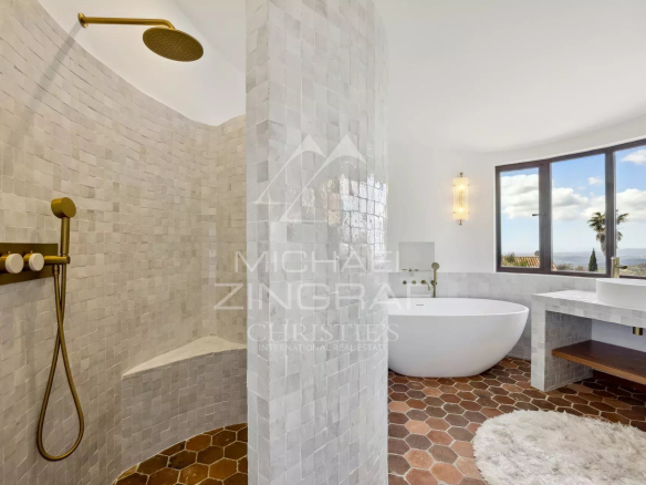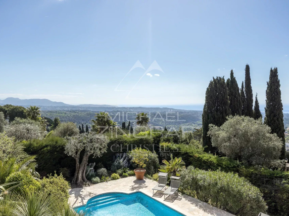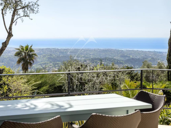 A commanding property of approximately 275 sq m with sea views, fully renovated in 2024, and ideally located in the residential hills above Vence.