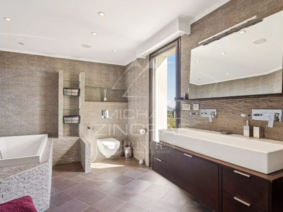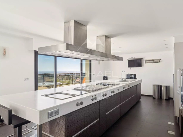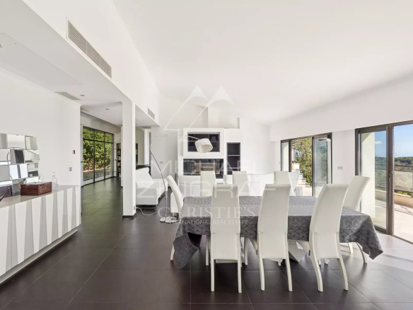 It consists of a large, bright living room of approximately 75 m² with a fireplace and library, opening onto a south-facing terrace and the infinity pool, a semi-professional equipped kitchen, a master suite of approximately 40 m² with a hammam and a terrace with sea views, as well as two bedrooms with private bathrooms and terraces.
