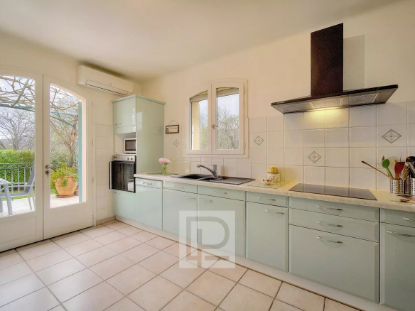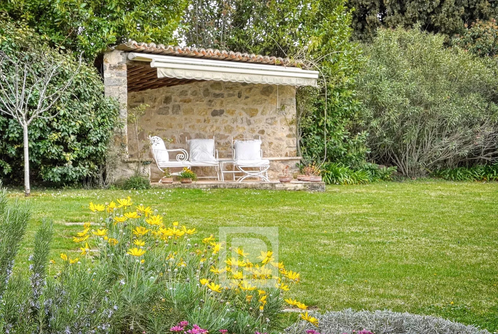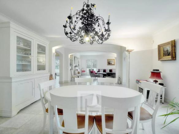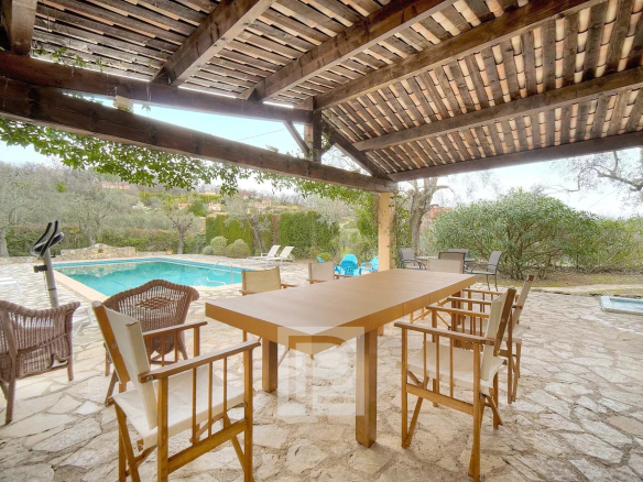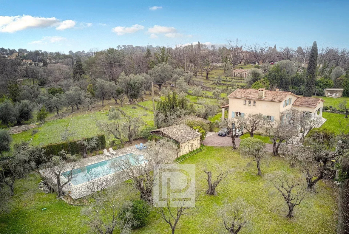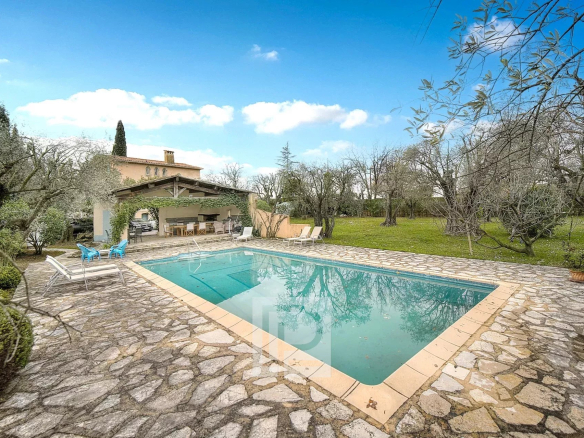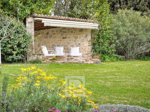 Prime location and setting. Nestled in the heart of a 4201m² park with some thirty centuries-old olive trees, apricot, cherry, and fig trees, etc., this charming family home of approximately 240m² comprises, on the ground floor, a spacious 68m² reception room, a separate kitchen, and a bedroom with en-suite bathroom and dressing room. Upstairs, there are two bedrooms sharing a shower room, a small sitting room, and two further bedrooms sharing a bathroom. In addition to the living area, there is a basement with a superb hammam, two cellars, a laundry room, and a garden shed. A beautiful heated swimming pool (12.5 x 5.6m) with a 38m² pool house, a two-car carport, and parking are also included. There is the possibility of building an additional 90m².