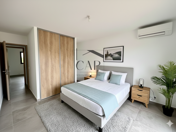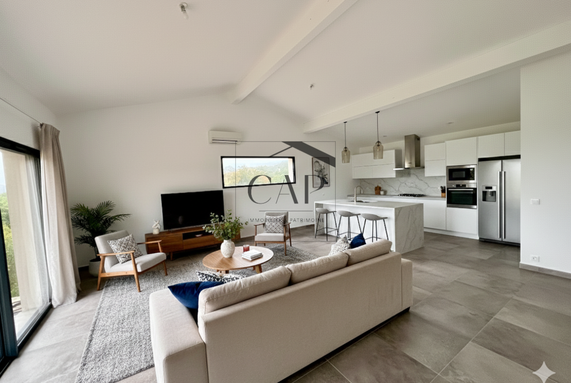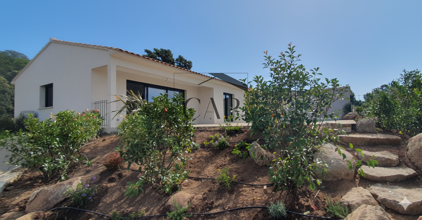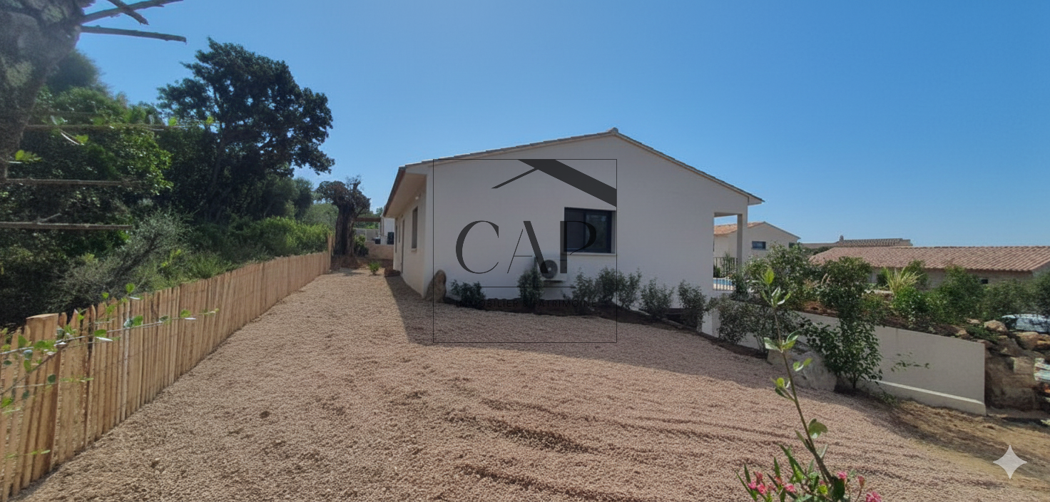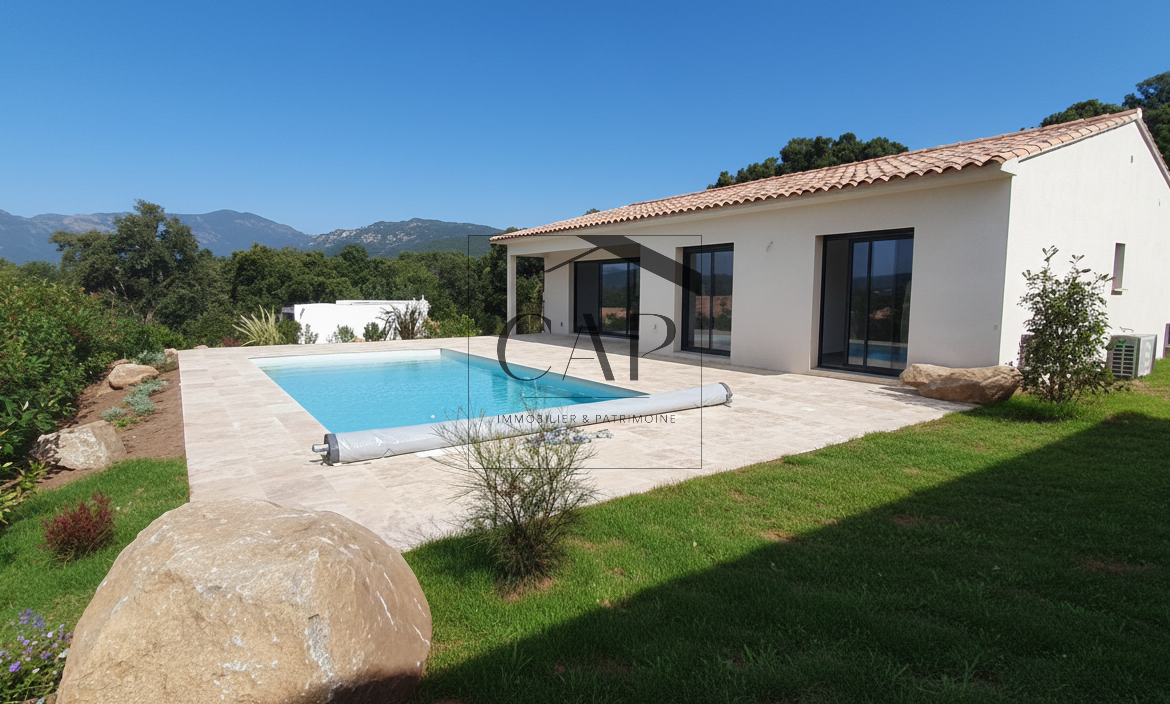CAP Immobilier & Patrimoine offers for sale this beautiful new 110 sq m (1,184 sq ft) detached 4-bedroom villa with unobstructed views from its elevated position, featuring a lovely 603 sq m (6,452 sq ft) private garden with a swimming pool, in Sainte Lucie de Porto-Vecchio 20144.