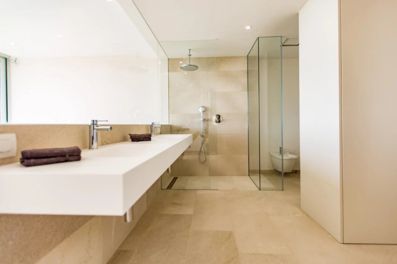 It combines native Mediterranean materials such as stone in the facades with noble Nordic materials such as parquet and a very contemporary design that allows you to enjoy the view and the brightness of the area thanks to the large glass surfaces.