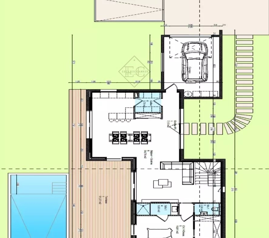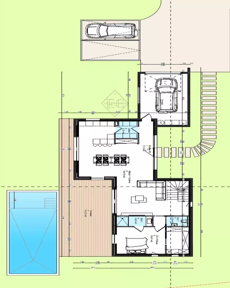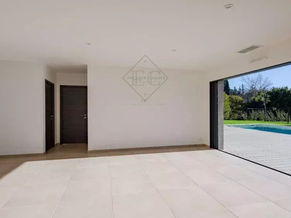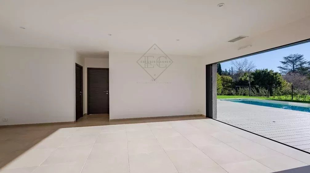 In a confidential residential area just 5 minutes from the historic heart of Mougins, discover this new contemporary villa, nestled in a veritable green setting, where the song of birds accompanies your daily life.