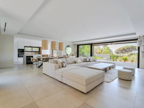All on one level, opening onto large terraces, it features a kitchen, living room, master bedroom with dressing room and office,