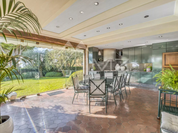 In a quiet and green residential setting, a few minutes from the Promenade des Anglais, this single-storey property of approximately 360 m² impresses with its generous volumes, its south-facing exposure and its elegant atmosphere.