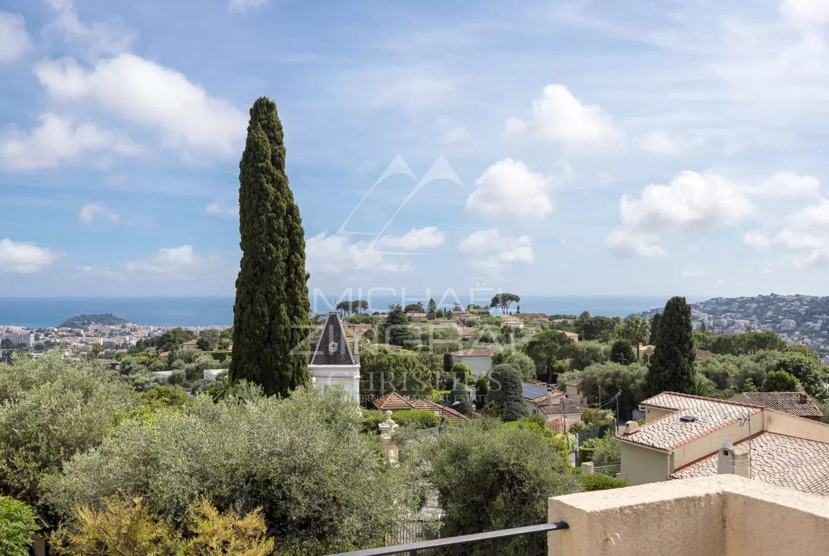 Upstairs, a mezzanine converted into an office overlooks the living room. Three bedrooms with storage, a bathroom, a separate toilet, and a pleasant terrace offering unobstructed views of the hills and the sea complete this level.