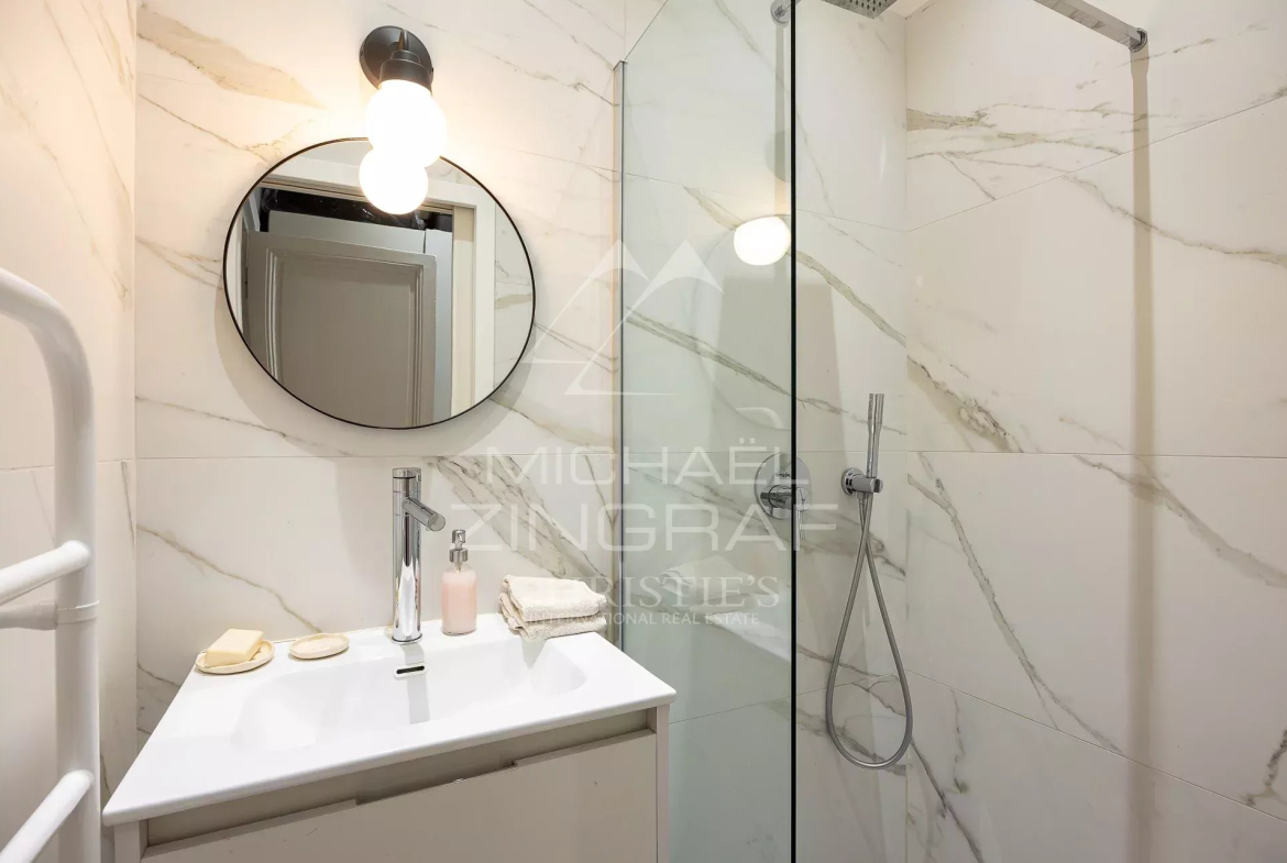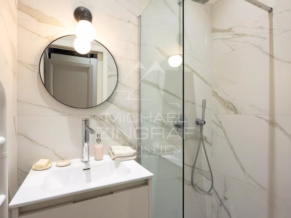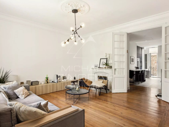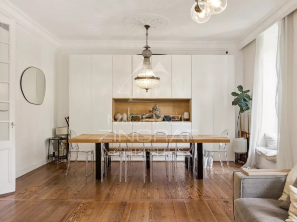 With its high authentic high ceilings in the reception rooms and the rooms, it includes, a large entrance, a double reception south with a view of the magnificent condominium garden, a fully furnished and equipped kitchen, 3 beautiful bedrooms in suite with each their bathroom/water including 2 bedrooms with access on the terrace and 2 WC. Many storage.