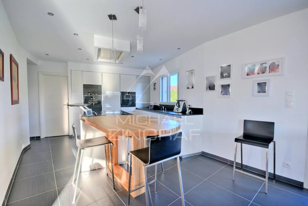 This charming house, built in 2015 and a surface area of 261 m², has an independent entrance, a large living room-room to be died triple exposure with fireplace-insert, terraces, an American kitchen, fitted and equipped, a back kitchen with a lingerie space and an office.