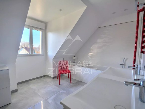 It also boasts a fully tiled basement offering several parking spaces and cellars, ideal for creating a wellness area, gym, or home cinema.