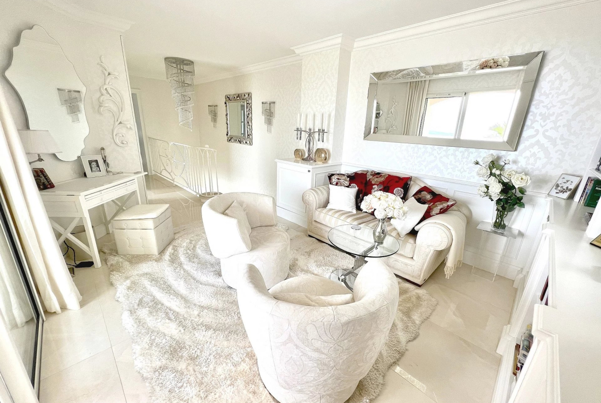 It consists on the garden level of an entrance with a large living room, an equipped kitchen, a sports room;