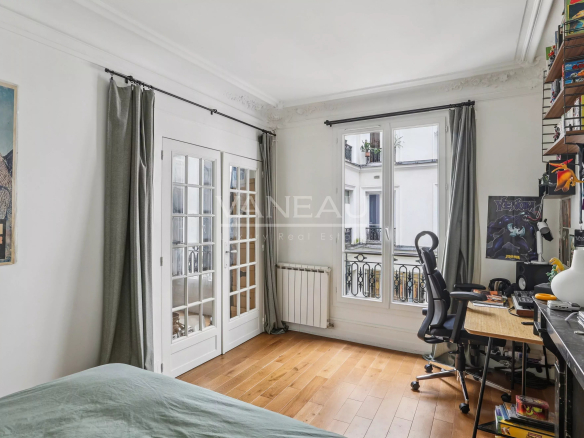 We are pleased to offer you, exclusively, just steps from Place de la République and Quai de Valmy, in a secure and well-maintained building (entry code, intercom, and concierge), a beautiful 2-bedroom apartment (54.39 sq m Carrez law, overlooking the courtyard) on the 1st floor of a 6-story building, complete with a cellar.