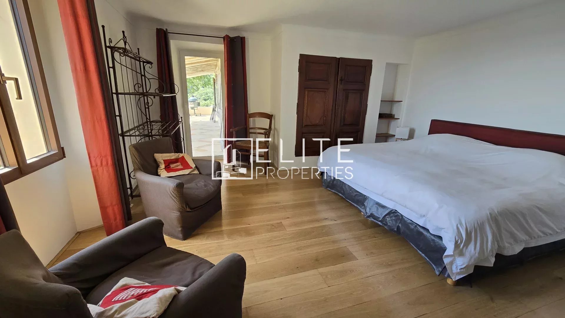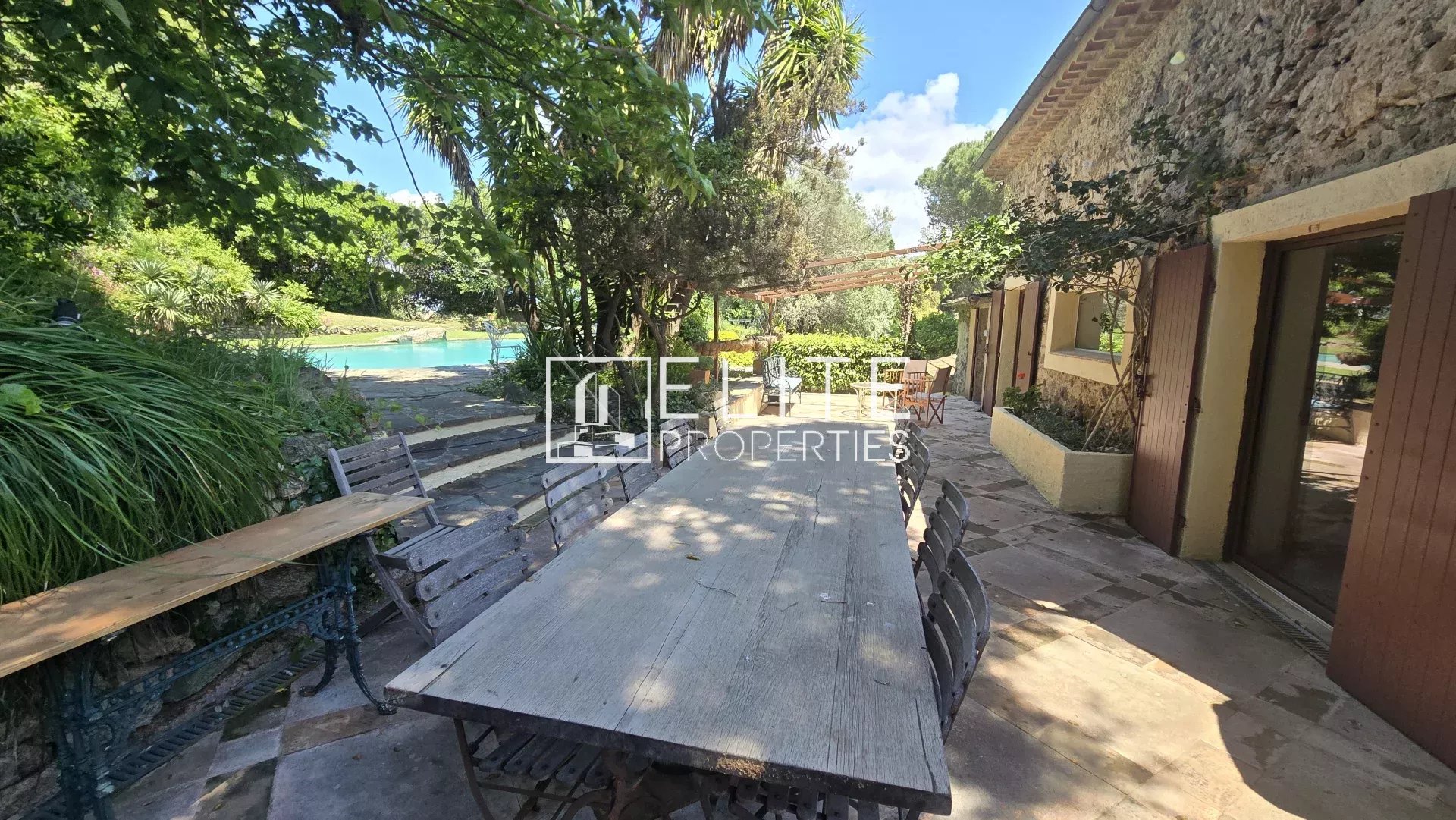 Pegomas bordering Tanneron (10 minutes from Pegomas and Mandelieu), exceptional farmhouse, with a stone section, with 9 rooms of 270 m². It offers breathtaking views of the Bay of Cannes and its mountains, in the heart of a private estate of more than 3 hectares of preserved nature (wooded and agricultural areas) with a paved track, natural spring and swimming pool (18×6).