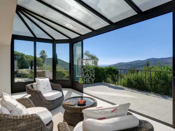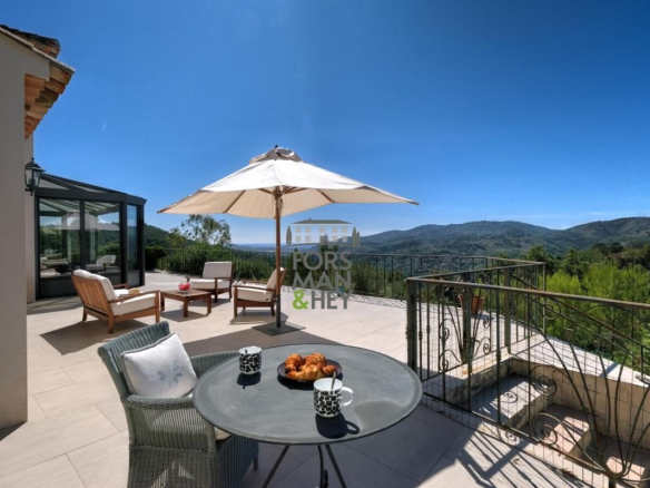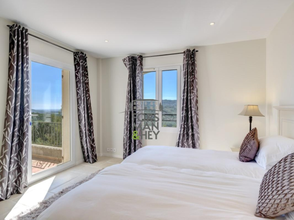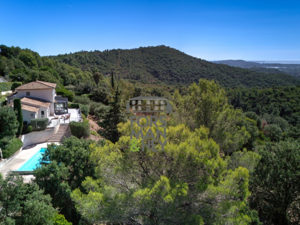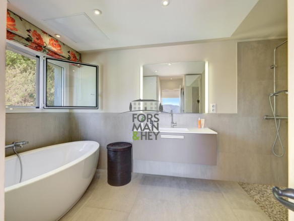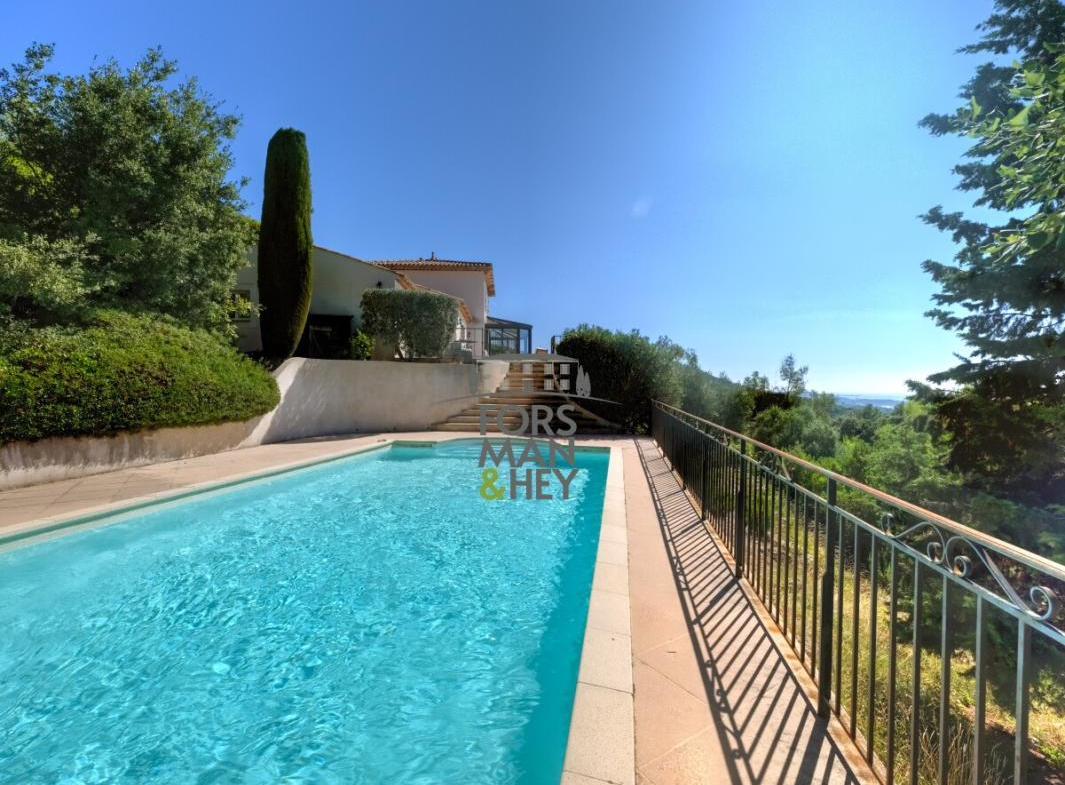 Nestled in a privileged natural setting, both private and close to all amenities, this modern, move-in ready villa is a true gem. Designed and furnished with high-quality materials, and fully air-conditioned, it features four spacious bedrooms, including a master suite, and a large, bright living room opening onto a fully equipped kitchen. Every room boasts breathtaking views across the valley to the Mediterranean Sea.