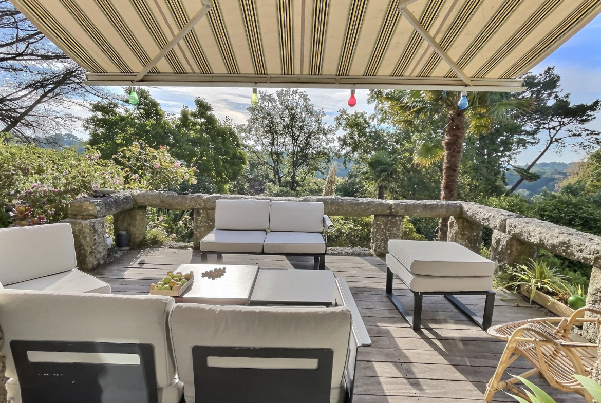 Built in the heart of a magnificent, meticulously maintained 4,500 m² wooded park, planted with numerous tree species, the approximately 145 m² property enjoys a commanding position offering unobstructed views over the valley.