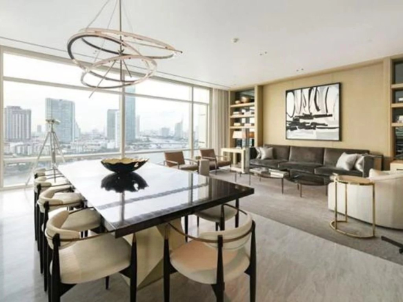 This unique and ultra-luxurious 5-bedroom, 7-bathroom penthouse sits atop the new, exclusive Four Seasons riverfront project in Bangkok. Boasting 1,009 square meters of luxurious living space, with world-class design, finishes, and furnishings, the property offers pristine panoramic views of the city and rivers across the majestic, winding Chao Phraya River. The project delivers five-star luxury at its finest, combining intelligent layouts with exceptional design and furnishings, and features 350 meters of river frontage. The Four Seasons Private Residences is a trophy property to impress the most discerning buyer. Location: This unique penthouse is situated on the banks of the Charoenkrung River, part of the Chao Phraya estate. The project is located on the central Bangkok side, making it highly convenient. Access to the toll plaza by car is also easy, providing quick access to all parts of Bangkok and beyond. The BTS Skytrain is also just a 15-minute walk from the project. There will also be an optional private boat access for residents once this luxury condominium project is completed. Residents can easily access the Sathon and Silom CBD areas from the project by walking down Charoen Krung Road and turning right onto Sathon Road, or by walking up Chan Road to access Naradhiwas Road. This exclusive area boasts a number of restaurants and shopping centers, including Asiatique, a charming riverside community hub just a 5-minute drive away, and the Robinson department store, located 5 minutes away in the opposite direction. Residents can easily explore the many dining and drinking options in the area, or take a short drive to the Sathon or Silom districts for even more entertainment options. All Corner Units Design: With this luxury condominium project, superior specifications, fit, and finish are standard. The building layout has been meticulously planned, resulting in a project that features a unique corner unit design. Each unit is designed as a corner unit, allowing all residents to enjoy a minimum of approximately 180-degree views of the beautiful waterfront and cityscapes. These unique design details are often not feasible due to lot shape and size. Low-Density Land Use: Because of the large amount of land the developers acquired to create this main project, the designers had more flexibility to maximize design layouts. With only three buildings on the site, two of which are low-rise, space is generously planned in terms of floor-to-area ratios. The resulting effect is that residents will feel an abundance of space while remaining within the project. Furthermore, as the building's designers wanted to focus on privacy by utilizing natural space and barriers to separate different areas, the project boasts an enormous amount of green space, with manicured 5-star hotel gardens and a riverside promenade opening onto a vast expanse of the Chao Phraya River, creating a sense of expansive openness. Chao Phraya River Front Access: This unique ultra-luxury project is one of the last remaining large riverfront properties in downtown Bangkok, giving it a high barrier to entry and a secluded, tranquil charm not found in any other trophy project of this size and location. Situated in Bangkok's new "millionaire's mile," the project benefits from 350 meters of direct riverfront access. Interior Design: The project's interior design is just as impressive as the exterior design and landscaping, as the designers focused on creating residences that are as comfortable, open, and spacious as possible. The project was meticulously designed from the inside out, emphasizing functional layouts and comfortable living spaces, culminating in a chic aesthetic reminiscent of a Western design school. Facilities are primarily divided into three distinct areas: the River Lounge, the Amenities Deck, and the Four Seasons Club. The developers have provided extensive communal spaces, ensuring residents have all the amenities they need for every occasion, whether for business, leisure, or health and fitness. These three facility areas offer an impressive five floors of space, complete with a stunning riverside promenade, generously designed to luxury project standards. Country Group Development has considered every detail, including ample green spaces and even dedicated wine, cigar, and billiards rooms. The project also features two large infinity pools and two separate fitness areas. Overall, this uniquely designed and styled penthouse offers the pinnacle of super-luxury living in Bangkok, boasting unparalleled quality of finish and sensational panoramic views of the city and river, making it a truly epic turnkey trophy real estate investment.