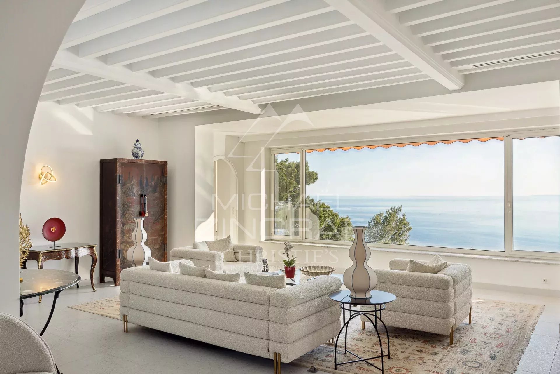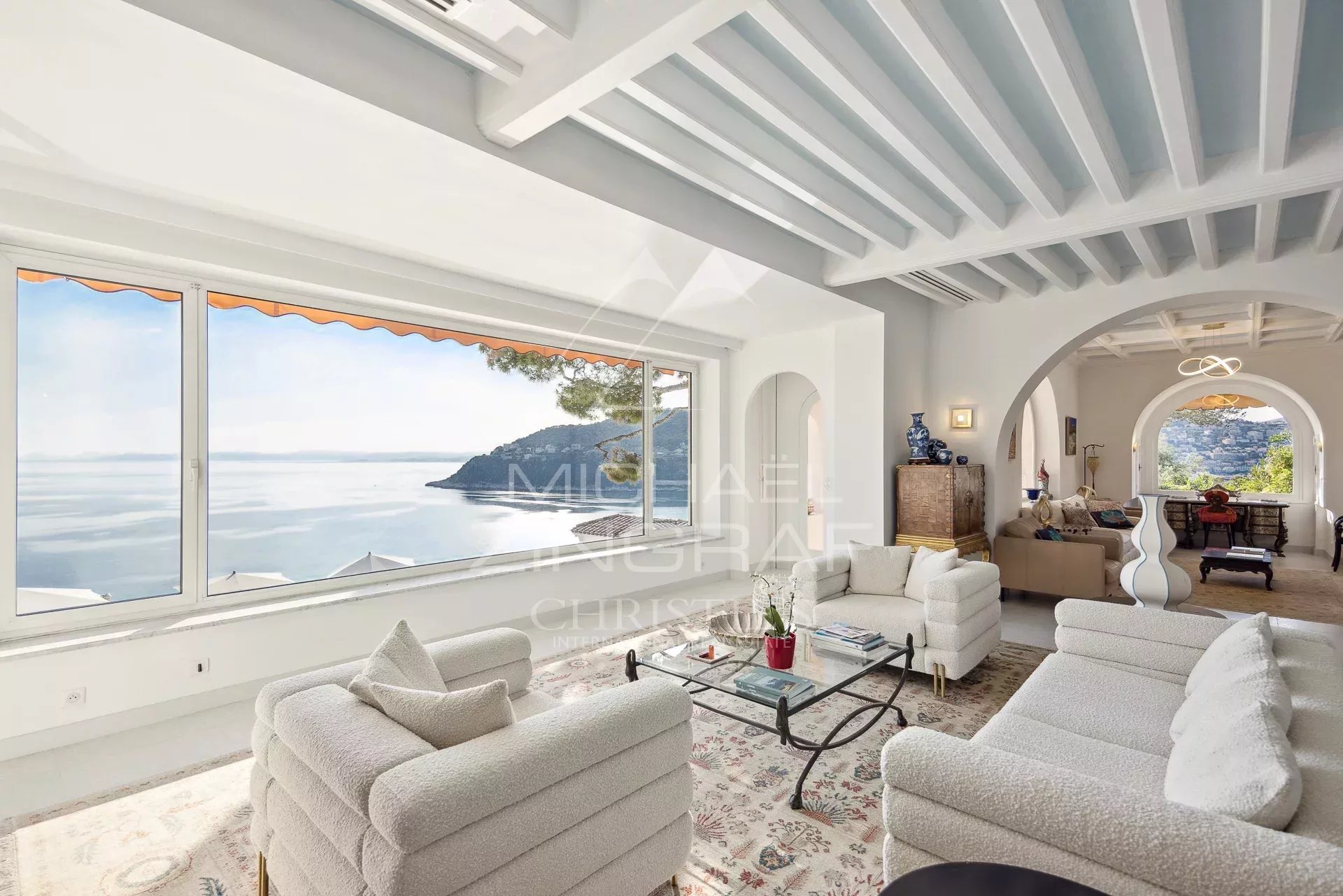 Facing due west, the property overlooks the bay of Villefranche and reveals a spectacular view of the Mediterranean up to the Estérel mountains, with unforgettable sunsets every evening.
