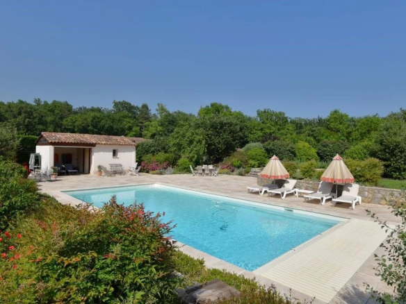 Just minutes from the village of Callian, this Provençal property of approximately 320 m² sits on 5,770 m² of landscaped grounds and features a heated swimming pool, pool house, 5 bedrooms, 3 bathrooms, a garage, cellar, carport, and solar panels. A prestigious, bright, and peaceful family home, ideal as a primary or secondary residence in the Pays de Fayence region.