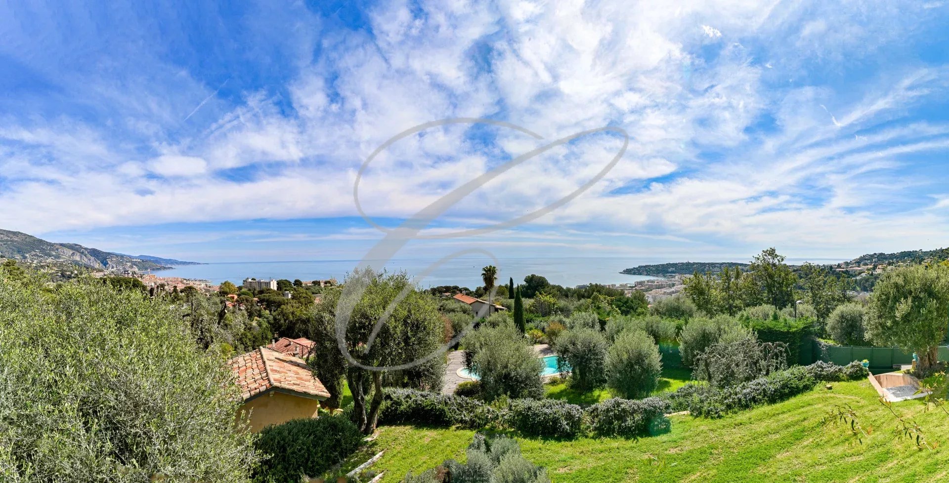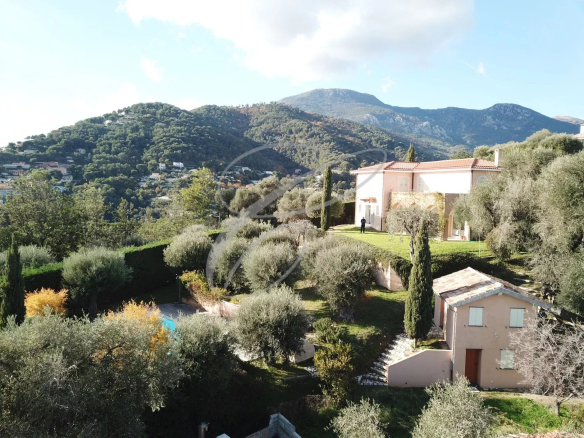 Superb property in a commanding position just minutes from the Principality. Charming residence nestled in the heart of approximately 3,000 m² of olive groves with a swimming pool. Panoramic 180° sea views. Double reception room, fully equipped kitchen, 4 en suite bedrooms. Outbuilding. Large interior patio. Huge basement. Guest house. A multi-car garage completes this exceptional property. Information on the risks to which this property is exposed is available on the Géorisques website: www.georisques.gouv.fr. CNPM Consumer Mediation Mediator