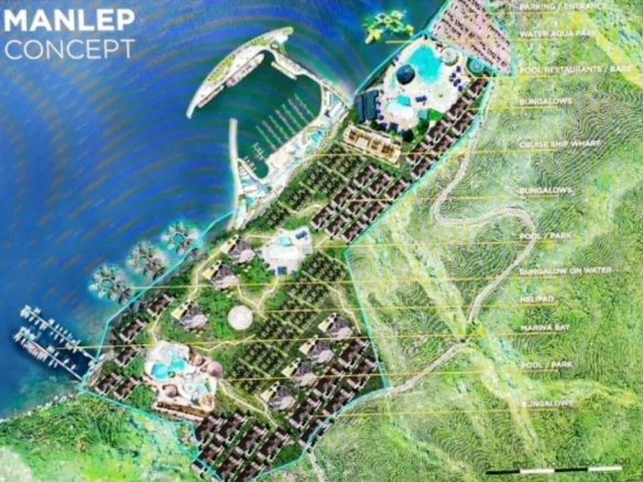 A 45-hectare plot of land with 1.1 km of white sand beach, wholly owned by a limited company, facing the pristine island of Port Villa, Vanuatu. Cruise ships currently dock there for the day, and the Manlep company has just obtained all the necessary permits to build a cruise ship marina with a hotel and luxury condominium villas