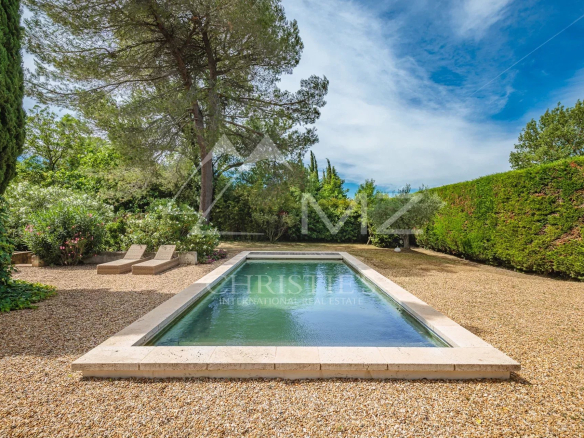 The beautifully landscaped garden offers an idyllic setting for relaxing by the pool or playing pétanque on the boules court. The view of the Luberon is breathtaking, offering a spectacle that changes with the seasons.