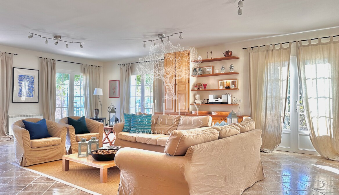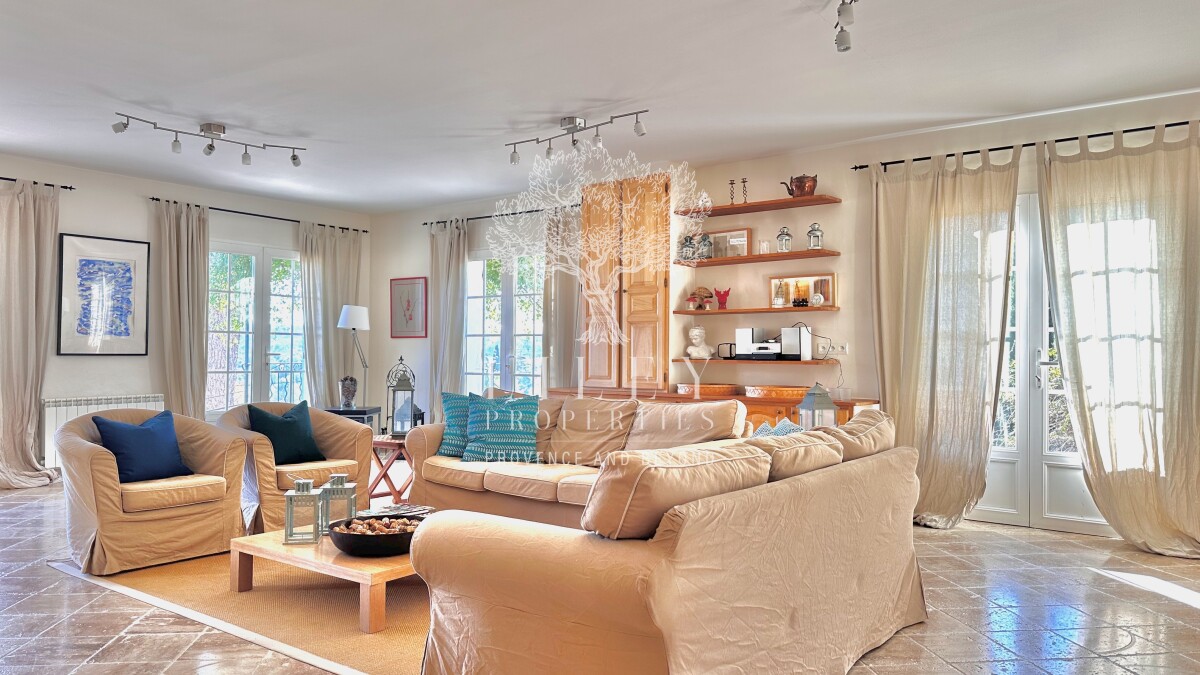 Not far from the center of the charming village of Lorgues, renowned for its typically Provençal market, repeatedly voted the most beautiful market in France, discover this superb bastide of approximately 300 m² of living space, nestled in the heart of a fully enclosed, landscaped garden of over 4,000 m².
