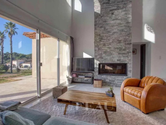 15 minutes from the beaches and 10 minutes from all amenities (shops, schools, motorway), 1 hour from Cannes, in a green environment, villa of 215 m2 of living space on a landscaped plot of 4033 m².
