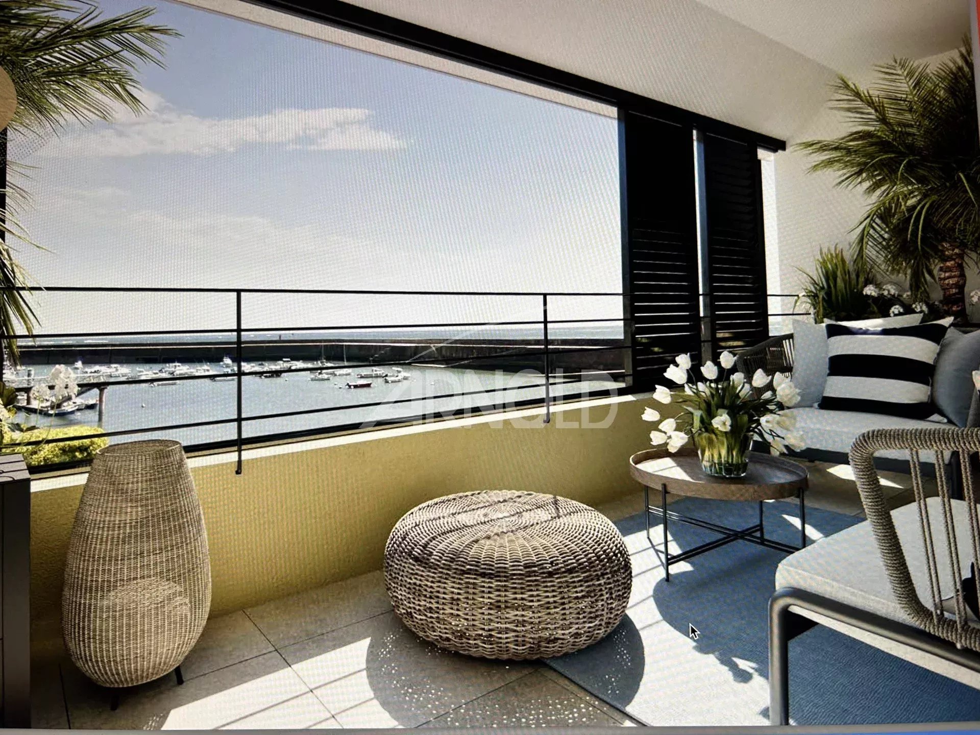 We invite you to discover our residence overlooking Port Maria on the peaceful bay, just steps from the beach, close to the Saturday market and the town center. Ideal for year-round living or holiday getaways in a seaside resort. This high-quality apartment comprises an entrance hall, a beautiful open-plan living area with a lounge, a fully equipped kitchen opening onto a 23 sq m west-facing terrace, three bedrooms, and a modern bathroom. An outdoor parking space and a video intercom system complete this property. Close to shops, schools, and public transport. Price payable by the seller.