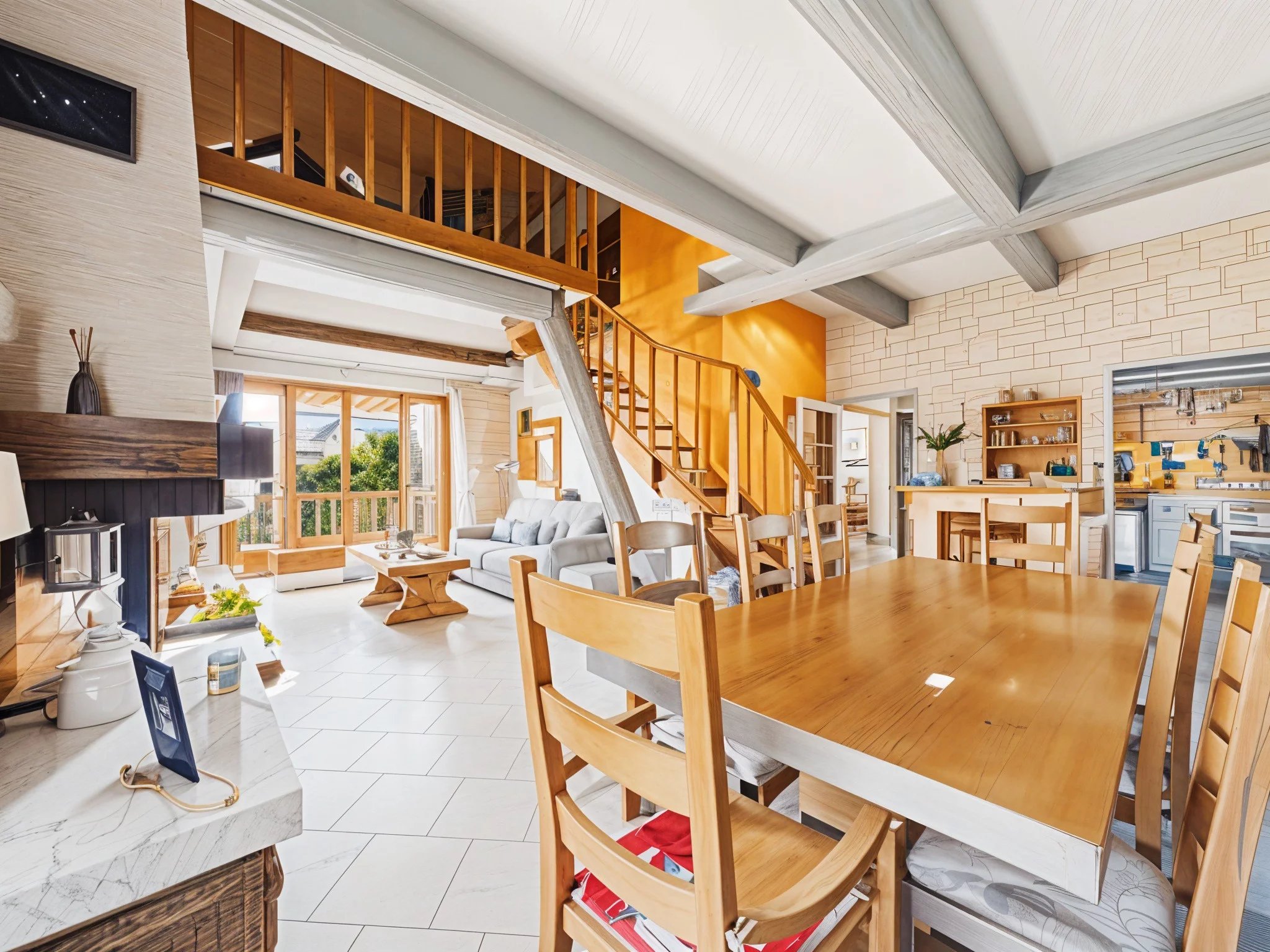 Discover a spacious 38 m² reception area where the fireplace adds a warm touch.