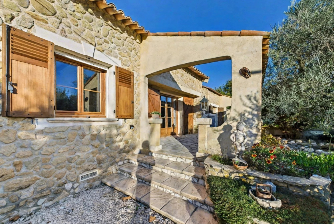 Outside, the 3,800 m² landscaped garden with its 42 olive trees, the swimming pool and the summer kitchen invite relaxation, complemented by a 40 m² garage.
