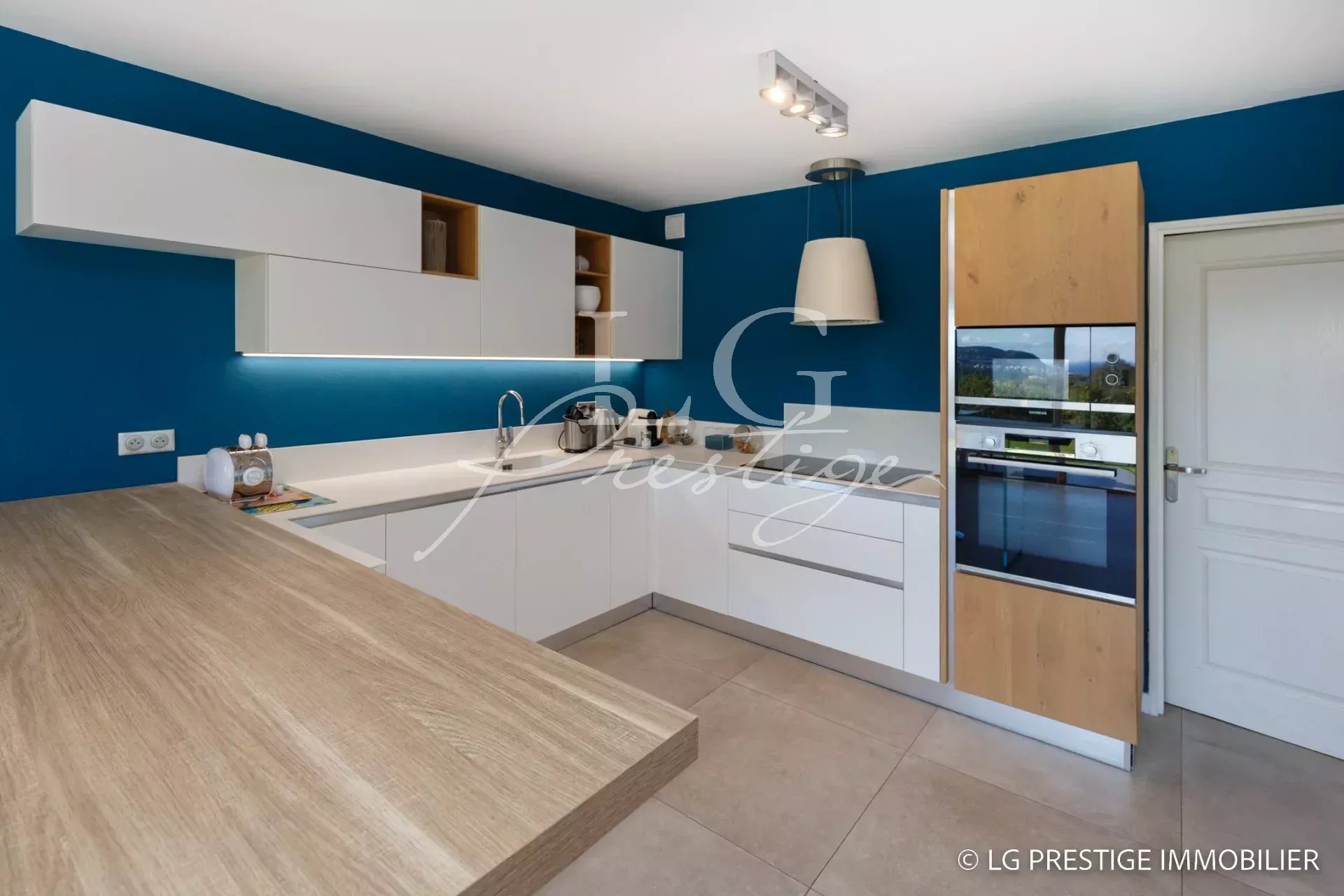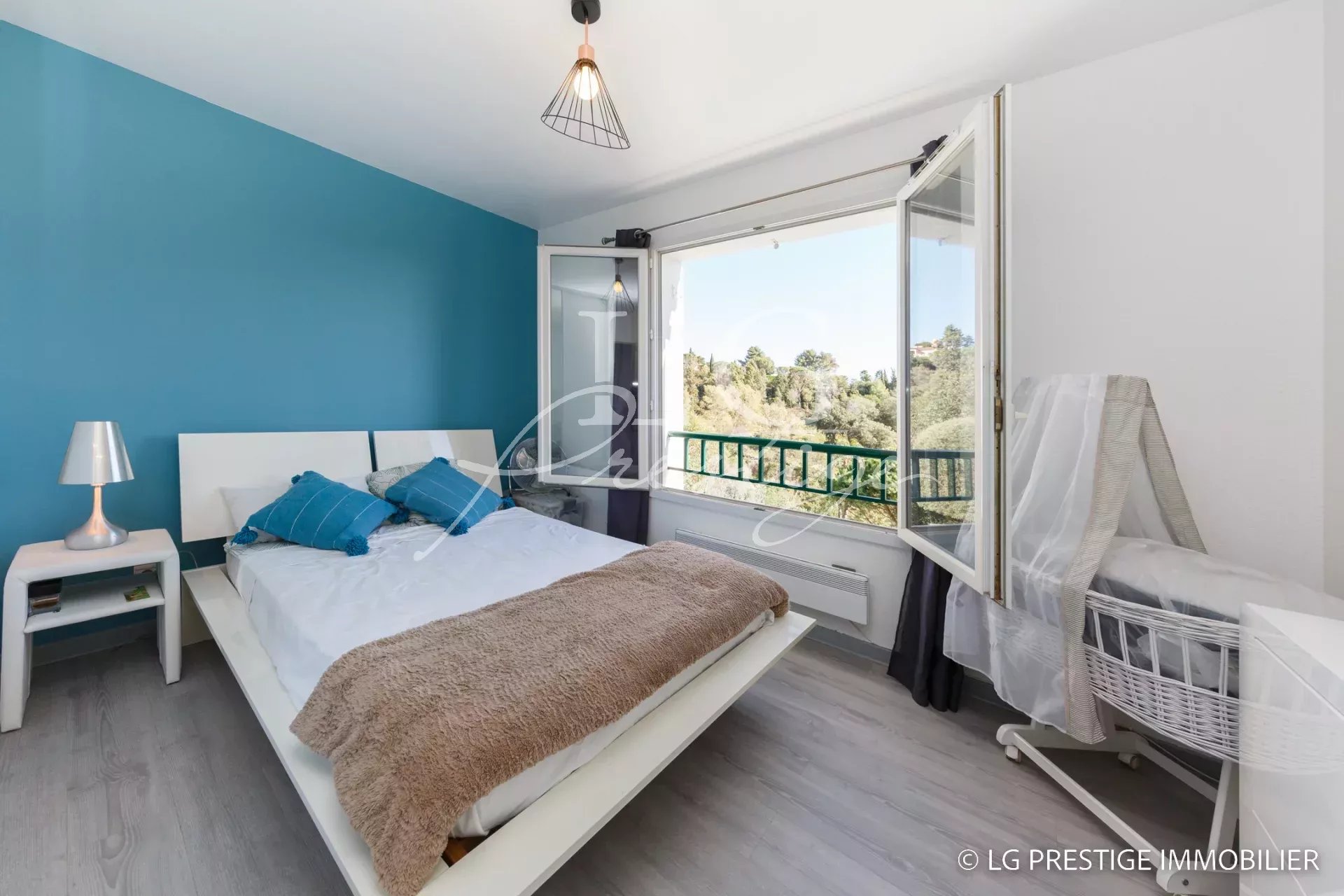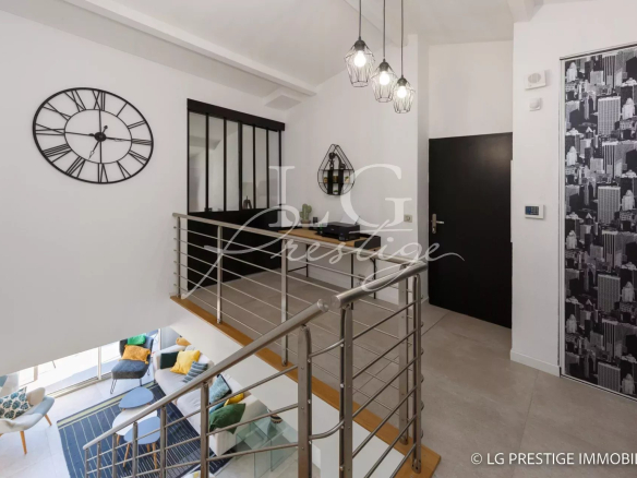 Under Contract – The Mandelieu agency presents this bright 141m² villa, ideally located in a quiet and secure 24/7 setting in Mandelieu, offering panoramic views of the surrounding greenery stretching to the sea. It comprises a magnificent living room, dining room, and fully equipped kitchen opening onto a lovely landscaped garden with a heated swimming pool and jacuzzi, three bedrooms including a master suite on the ground floor, an office, an attached garage, two parking spaces, and a pétanque court.