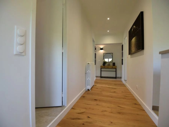 In Callian, within walking distance of the village, in a quiet and green residential area, this renovated family villa of approximately 167 m² sits on a 2,410 m² wooded plot. It features a 12 x 5 m swimming pool, pool house, shaded terrace, large garage, cellar, shed, and workshop. The bright and spacious 60 m² living room includes a fireplace, a ground-floor bedroom, three bedrooms upstairs, an office/fifth bedroom, a dressing room, a bathroom, and a shower room. This turnkey home is ideal as a primary or secondary residence in Provence.