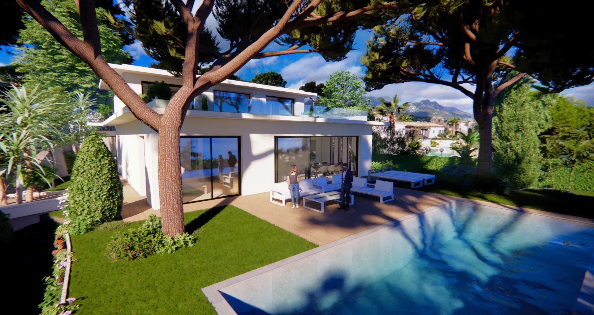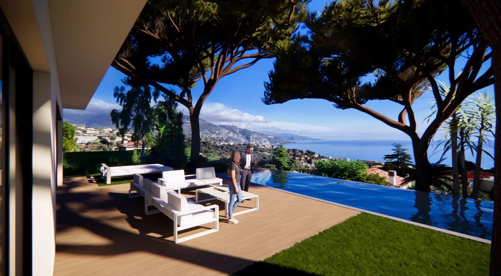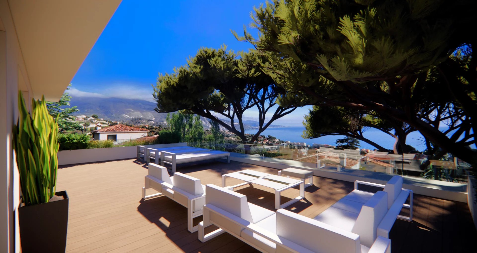 Just minutes from the Principality, in a private estate, this luxurious, brand-new contemporary villa sits at the heart of a landscaped garden of approximately 1,000 m² with an infinity pool. Enjoy breathtaking panoramic sea views. The villa features a double reception room, a fully equipped kitchen, and five bedrooms with en-suite bathrooms. Ample parking completes this exceptional property.