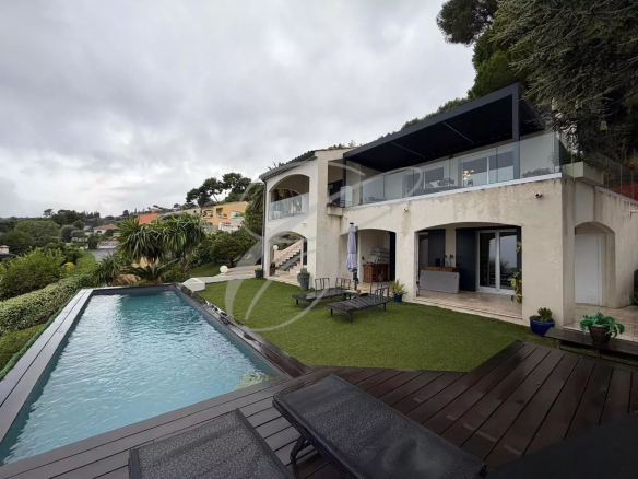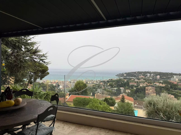 Residential estate in the hamlet of Roquebrune, fully renovated 6-room villa in the heart of a garden of approximately 1,155 m² with a swimming pool. Panoramic sea view of Cap Martin. The villa comprises a large living room, dining room, fully equipped open-plan kitchen, 4 bedrooms, 3 bathrooms, and a mezzanine. A closed garage with planning permission granted for its extension. Information on the risks to which this property is exposed is available on the Géorisques website: www.georisques.gouv.fr