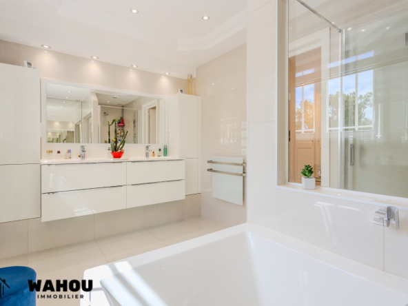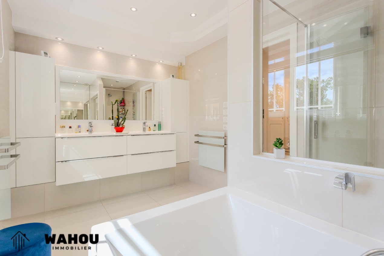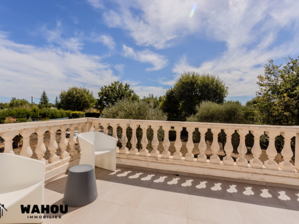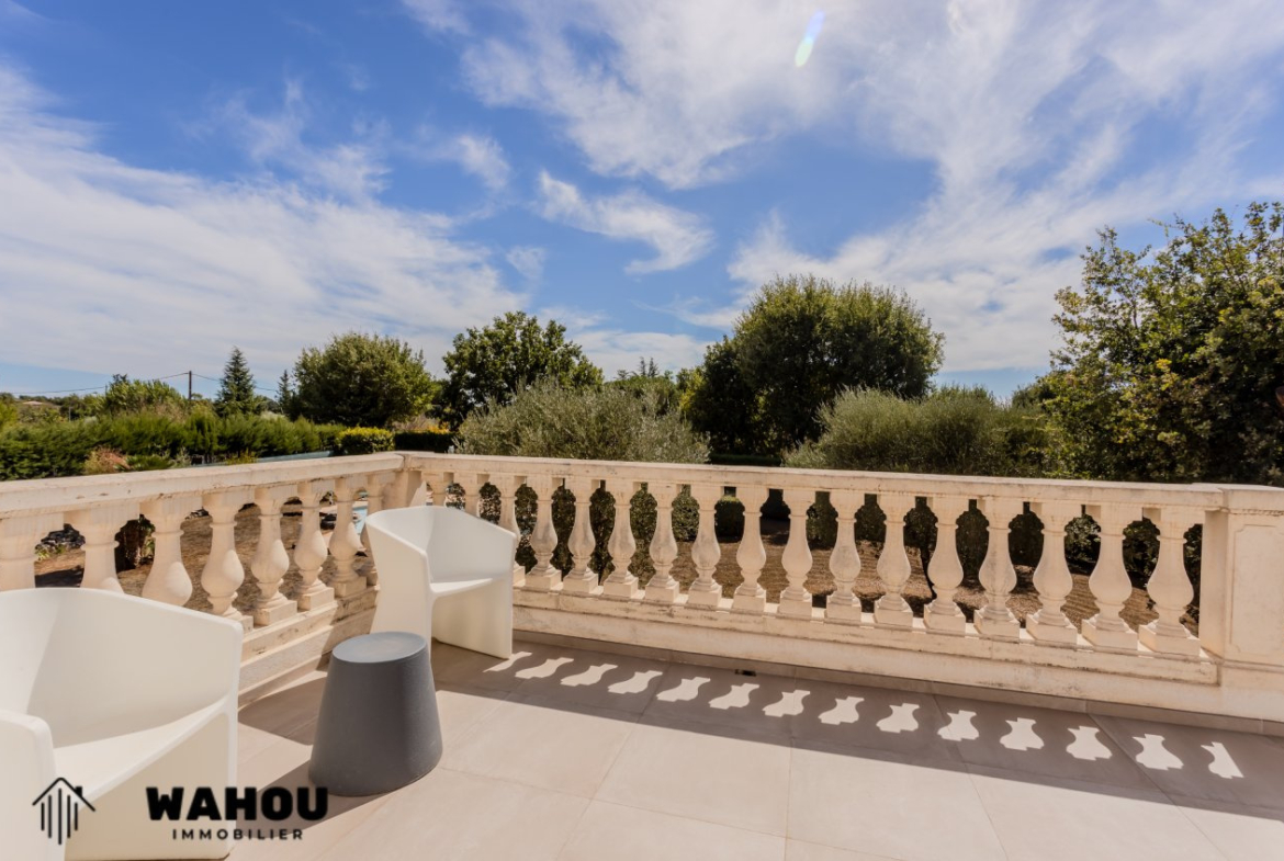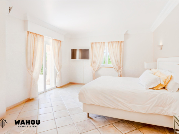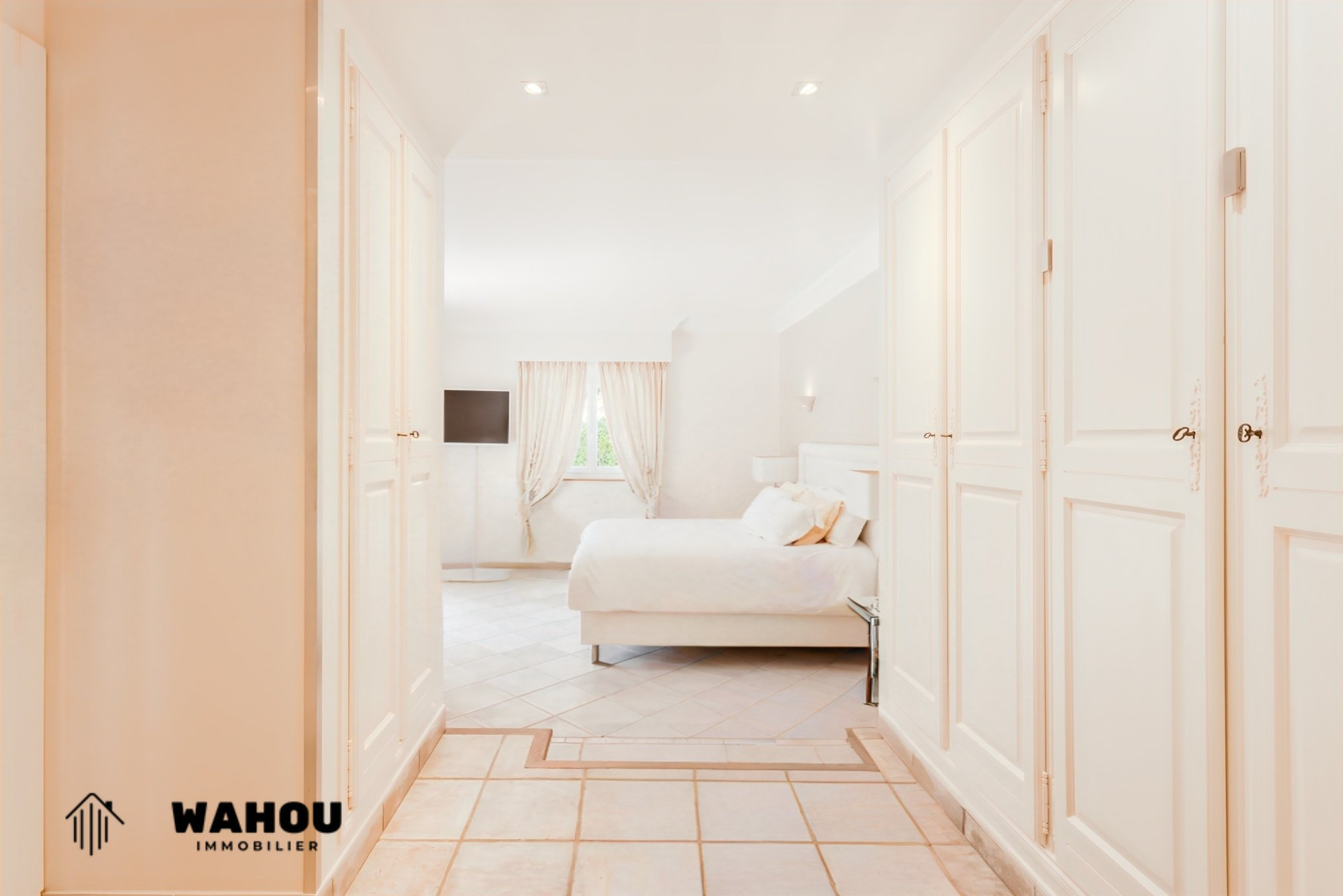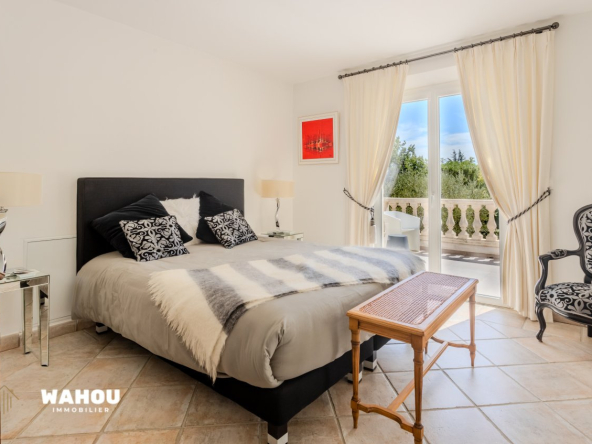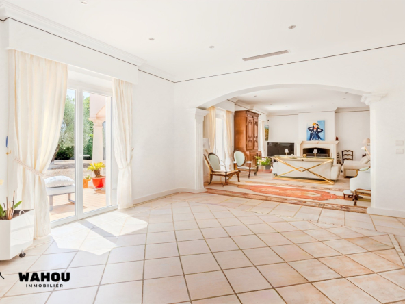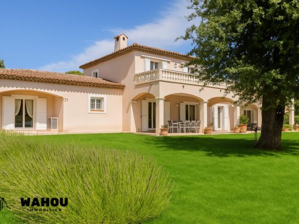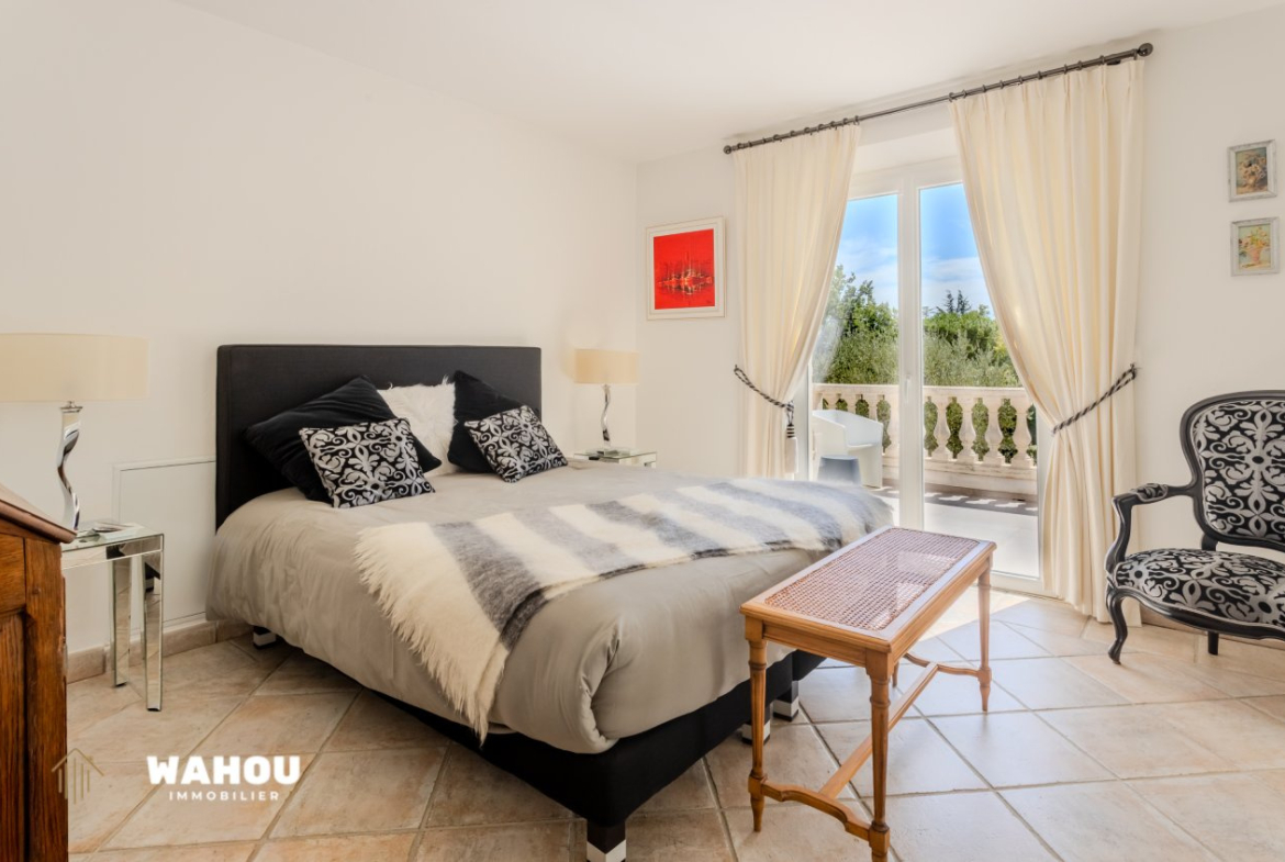 In an exclusive residential environment, a few minutes from the village, discover this sumptuous traditional villa of 190 m2, perfectly maintained, nestled in the heart of a flat and wooded park of 2,500 m2. The entrance opens onto a bright double living room with fireplace, extended by a dining room and a quality equipped kitchen, all (approximately 70m2) opening onto a large sunny terrace, ideal for entertaining. The master suite on one level offers a true cocoon of comfort with bathroom and dressing room. Upstairs, two bedrooms open onto a private terrace with unobstructed views, complemented by an elegant shower room. The landscaped garden, with Mediterranean species, is home to a sumptuous free-form heated swimming pool, creating a refined and intimate relaxation space. Luxury annexes: laundry room, workshop, garage, double carport. Surfaces of approximately 90m2 can be arranged according to your projects (T(2) apartment, workshop, office, etc.) Large parking area