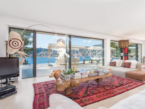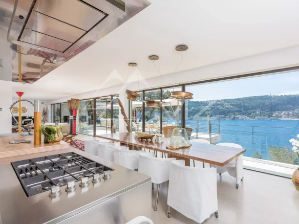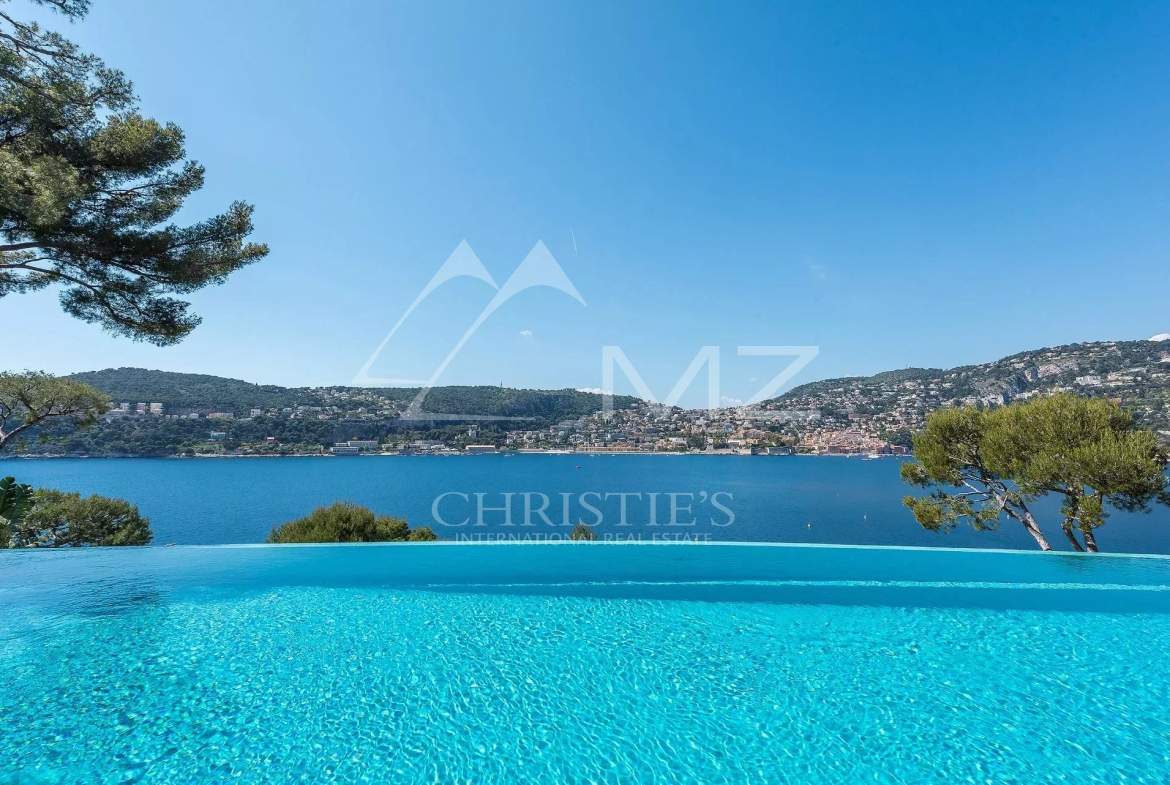 Located on the west side of Cap Ferrat, this superb contemporary villa offers breathtaking sea views and stunning sunsets over the bay of Villefranche. Just steps from the beaches, this property comprises a large living/dining room, an open-plan fitted kitchen, all opening onto a spectacular terrace with outdoor dining seating for 12. It also features four bedrooms with en-suite bathrooms or shower rooms, two studios with independent access, a home cinema, and a gym.