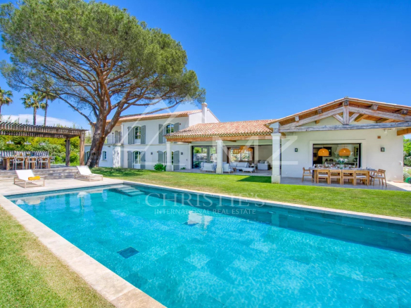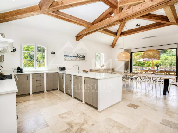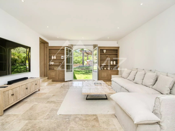 Perfectly located, just minutes from the town center and beaches of Saint-Tropez, this contemporary villa offers attractive living spaces with large bay windows opening onto the heated swimming pool and landscaped garden.