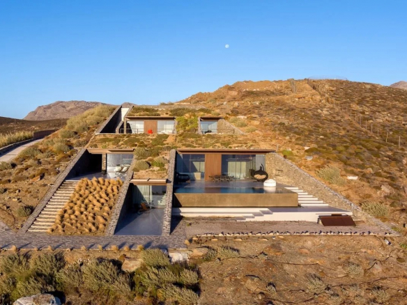 Serifos, the Greek island of authentic charm and unspoiled landscapes, is home to this exceptional villa located just steps from Agios Sostis beach. Built on a 6,000 m² plot, this property with its distinctive architectural design offers a rare living environment and breathtaking views of the Aegean Sea.