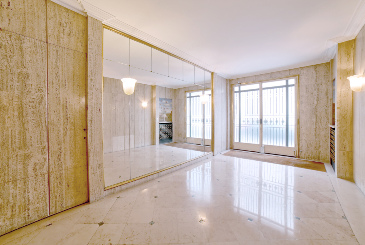 a 63 sq m (678 sq ft) reception room opening onto two small balconies;