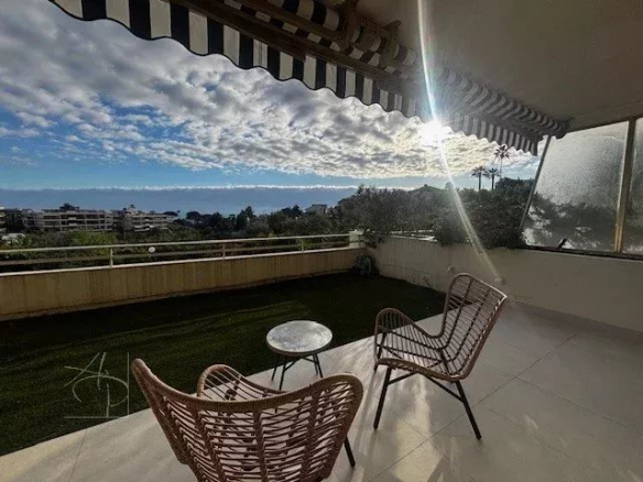 In the quiet, leafy Croix des Gardes area, within a small, upscale residence with a swimming pool and concierge, this beautiful, fully renovated two-bedroom apartment extends onto a 40 sq m southwest-facing terrace with sea and park views. The apartment comprises an entrance hall with built-in storage, a double living room with a fully equipped open-plan kitchen, a bedroom with an en-suite shower room and toilet, and a second en-suite bedroom with a dressing room, shower room, and toilet. This dual-aspect apartment has been renovated to a high standard and features ducted air conditioning. Enjoying a