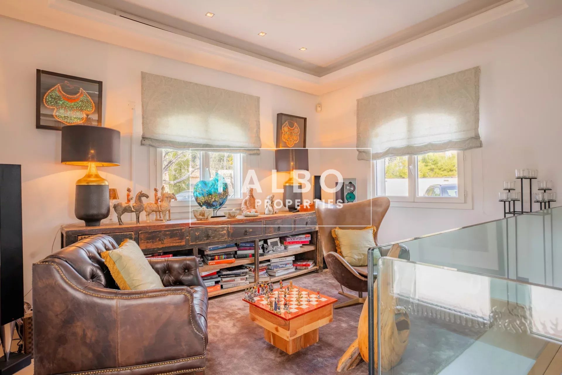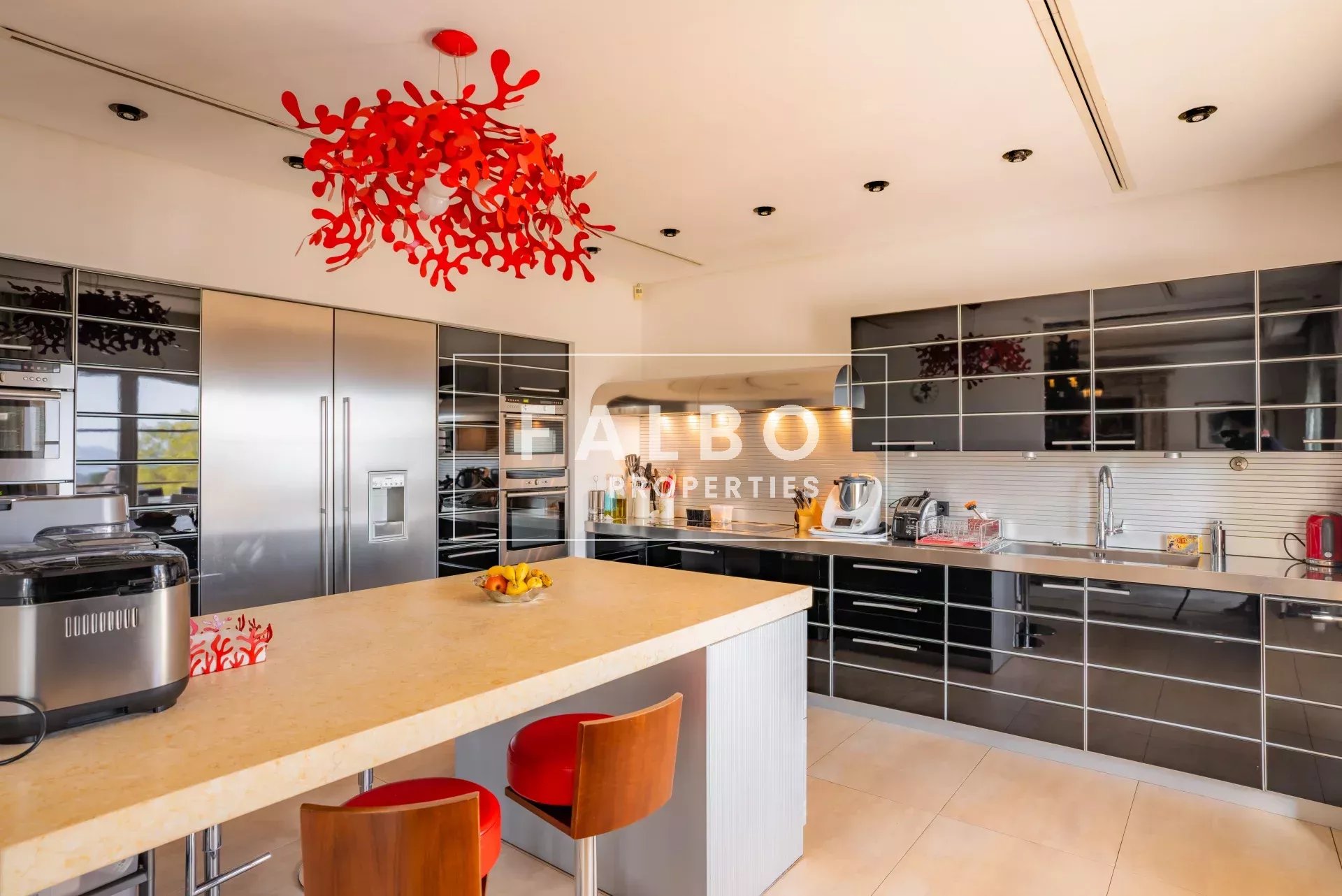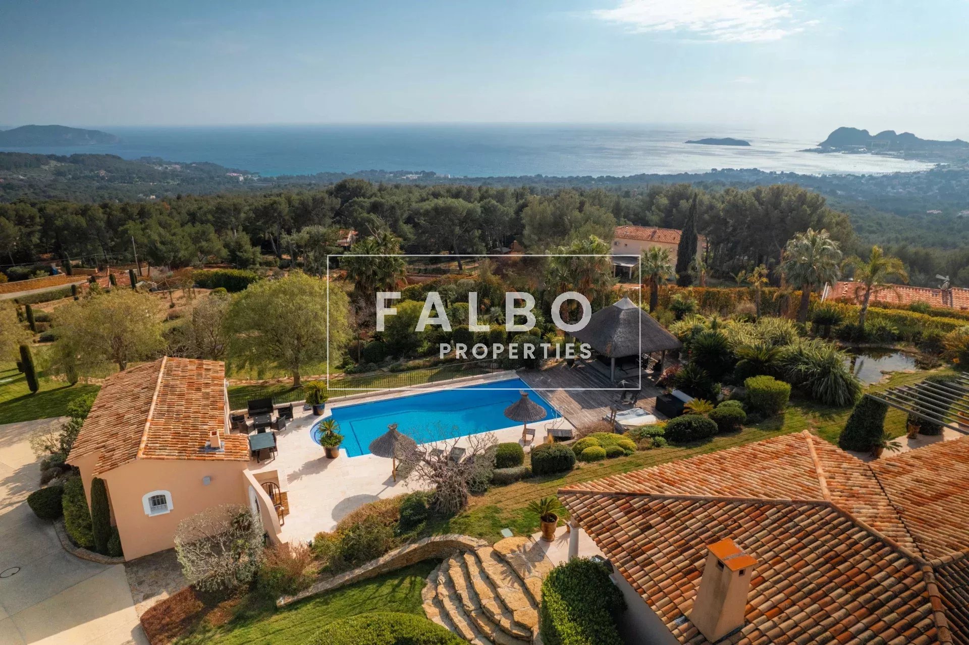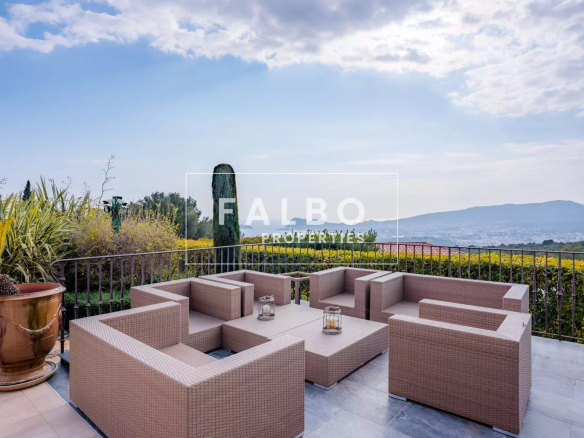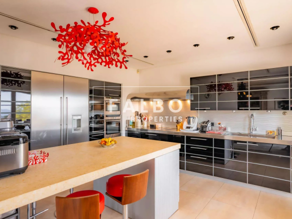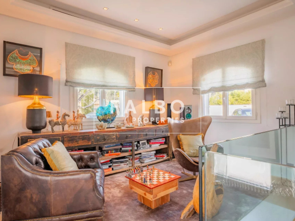 Mostly on one level, it offers spacious reception rooms as well as a large modern kitchen with a dining area, a sumptuous 100 sq m master suite (double dressing room, bathroom), extended by an office with sea views.