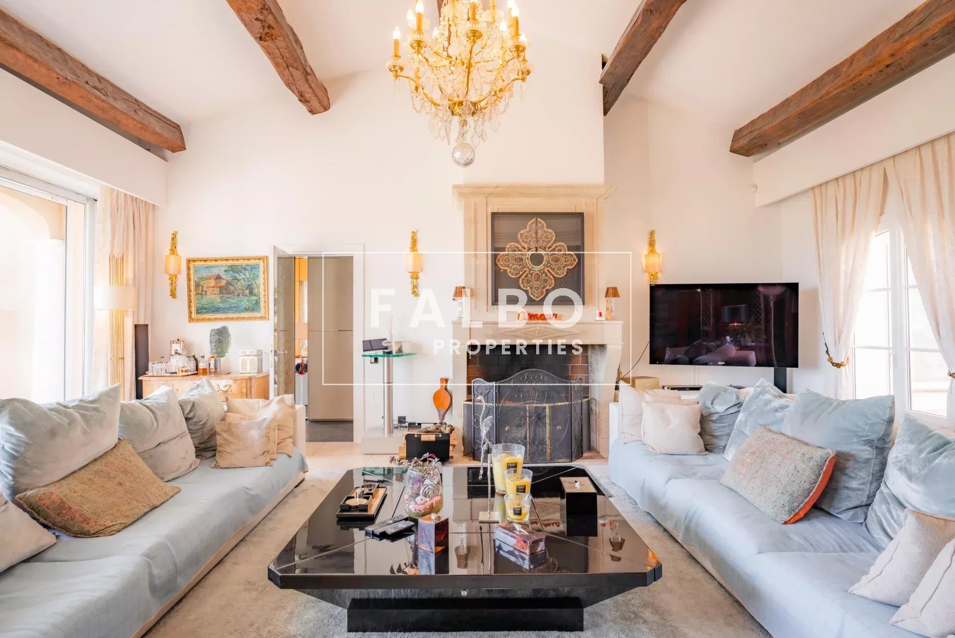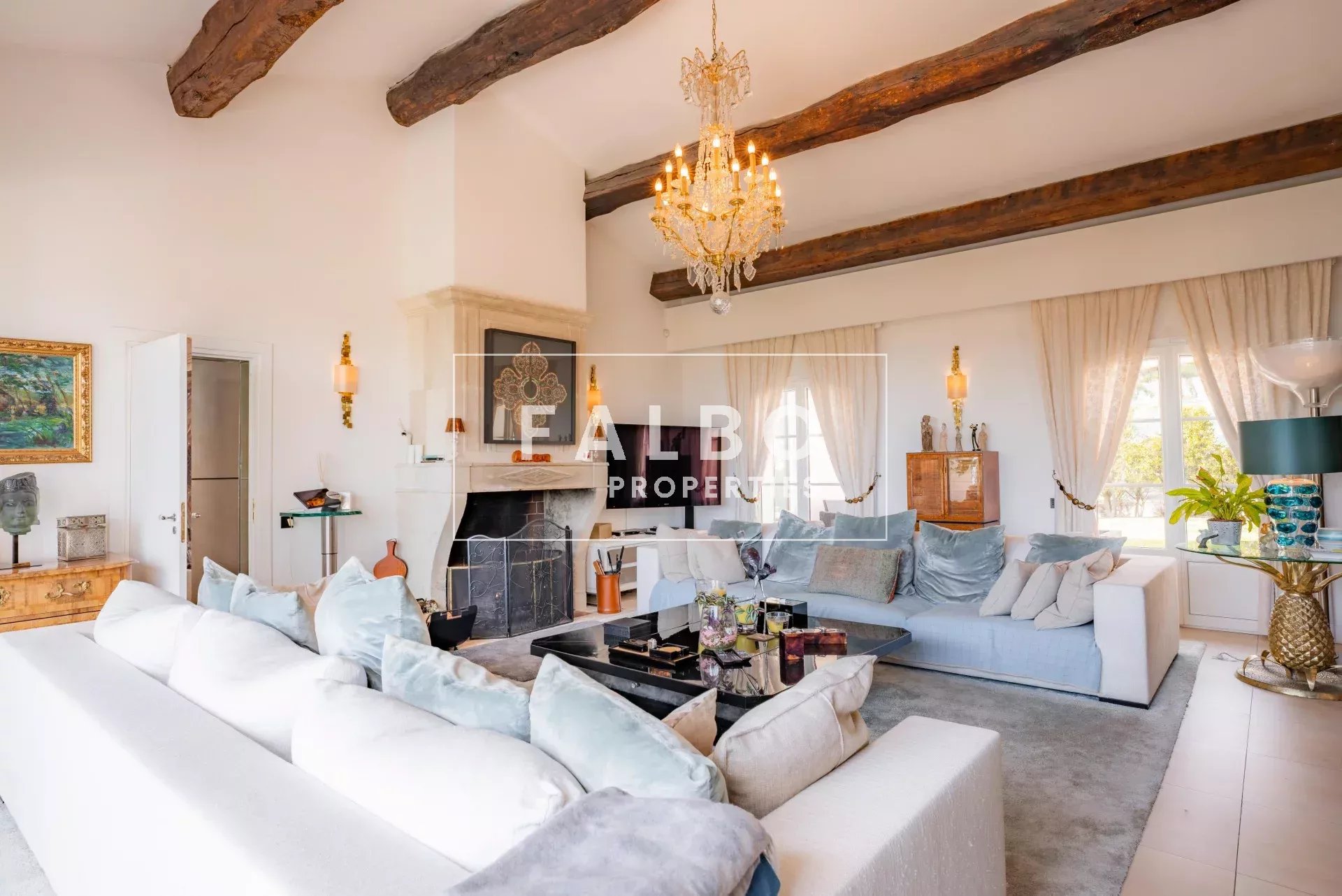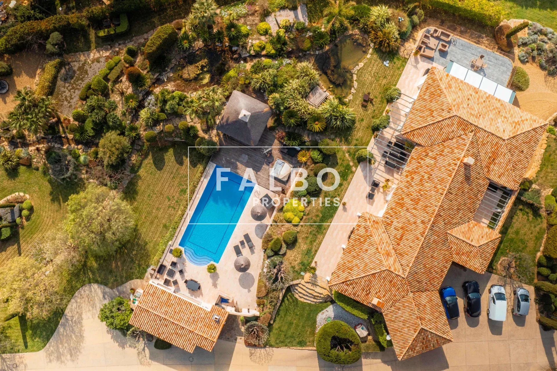 In a dominant position, in a quiet and perfectly secure location, the villa offers a 12×6 m heated swimming pool with jacuzzi and a large pool house, in the heart of a well-maintained environment bordered by an artificial river.