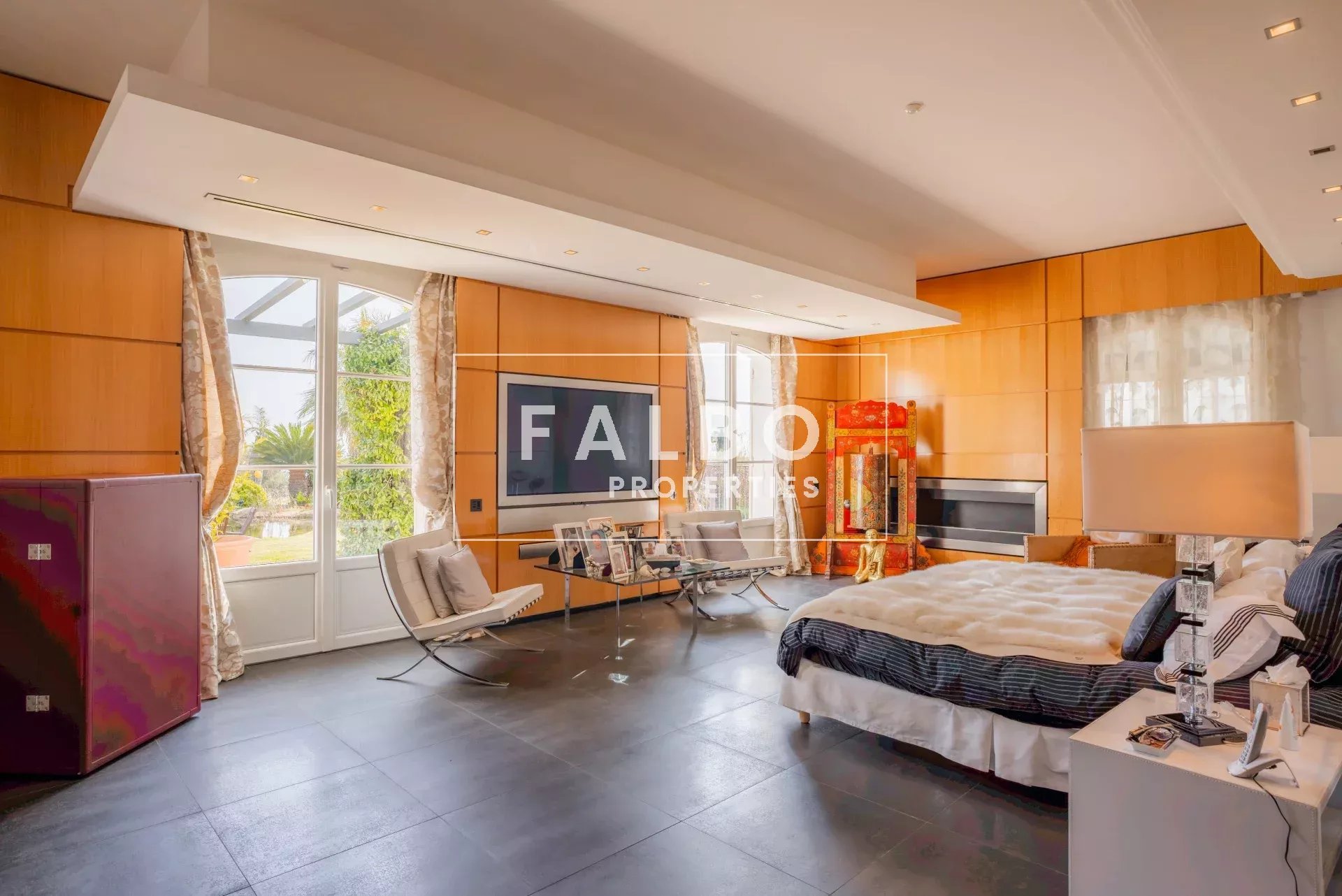 Three further suites and numerous other rooms on the garden level are dedicated to leisure and well-being (library/home cinema, billiards, lounge bar, treatment room, wine cellar, gym), as well as a laundry room, linen room, office, staff quarters and a double garage.
