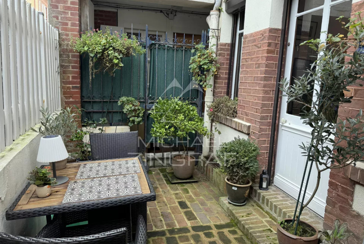 It benefits from a furnished and equipped kitchen extending onto a charming outdoor space.