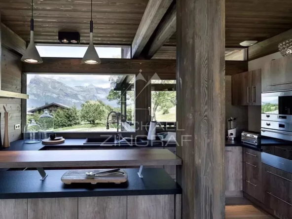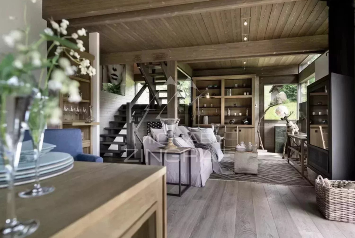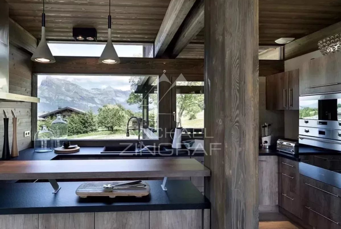 Michaël Zingraf Real Estate Megève presents this stunning architect-designed chalet located in Demi-Quartier. Offering high-quality features, this 184 sq m (2,015 sq ft) chalet comprises a spacious open-plan living/dining room/kitchen. Upstairs, there are three generously sized bedrooms under the eaves, and on the garden level, an additional bedroom and a garage.